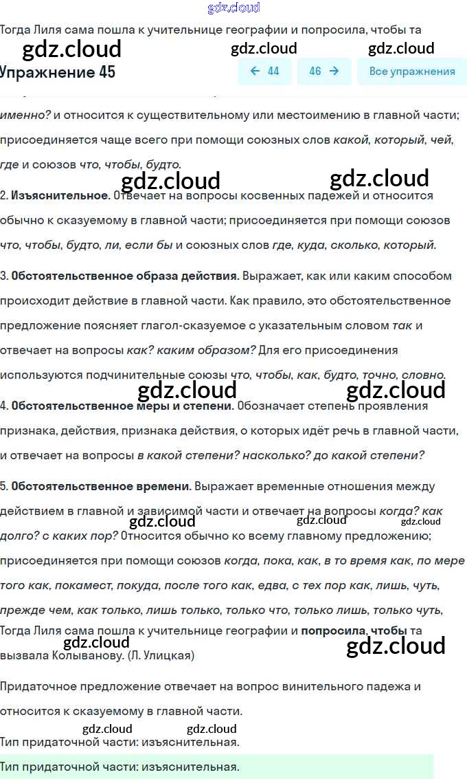 контрольная работа / сложноподчинённое предложение / вариант 1 / 45