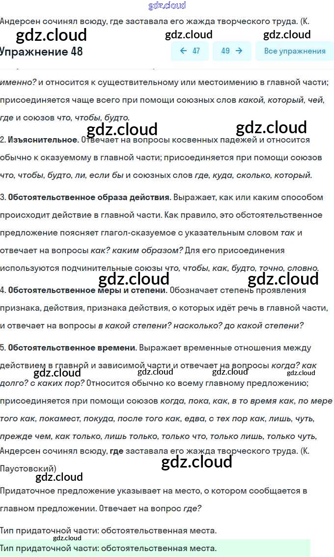 контрольная работа / сложноподчинённое предложение / вариант 1 / 48