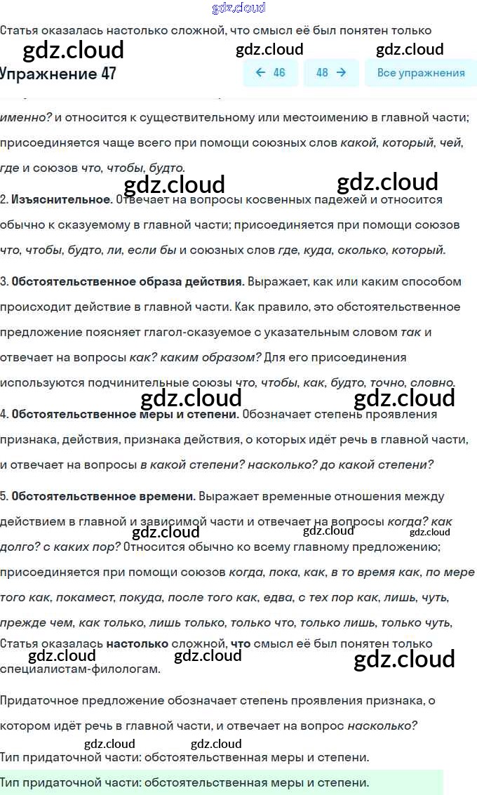контрольная работа / сложноподчинённое предложение / вариант 2 / 47