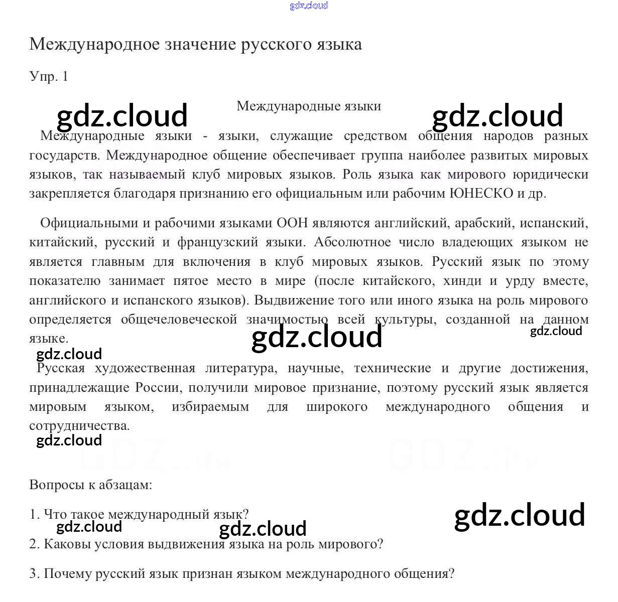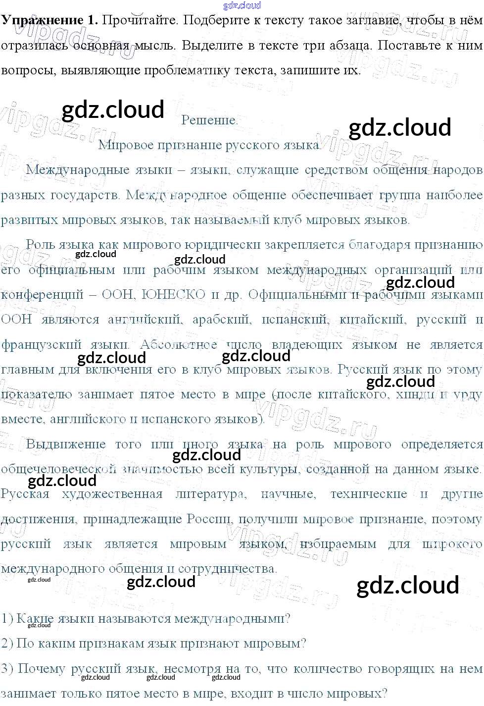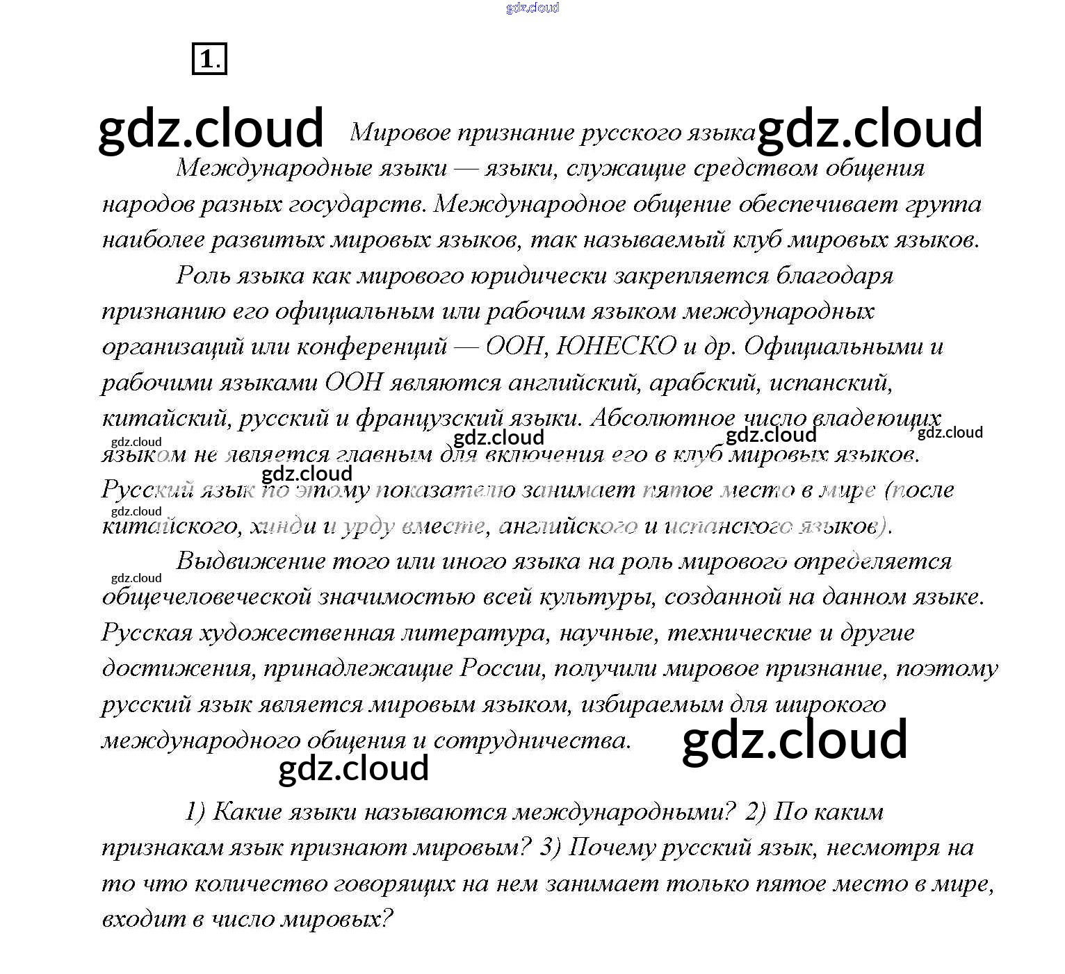 Ответ на задание 1 Учебник Русский язык за 9 (девятый) класс Тростенцова, Ладыженская, Дейкина, Александрова 2014
