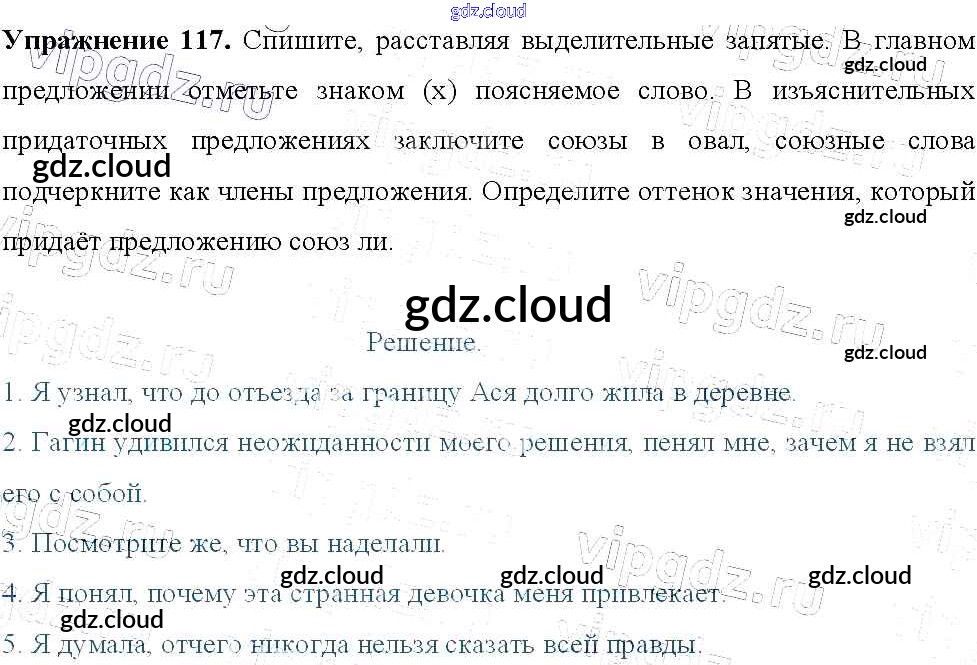 Ответ на задание 117 Учебник Русский язык за 9 (девятый) класс Тростенцова, Ладыженская, Дейкина, Александрова 2014