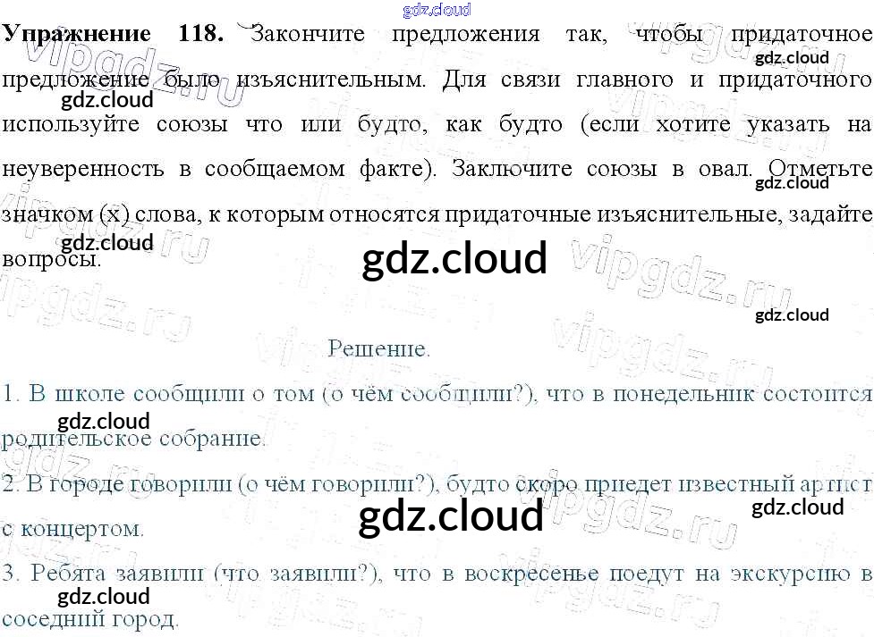 Ответ на задание 118 Учебник Русский язык за 9 (девятый) класс Тростенцова, Ладыженская, Дейкина, Александрова 2014
