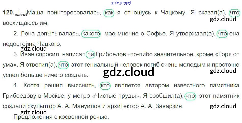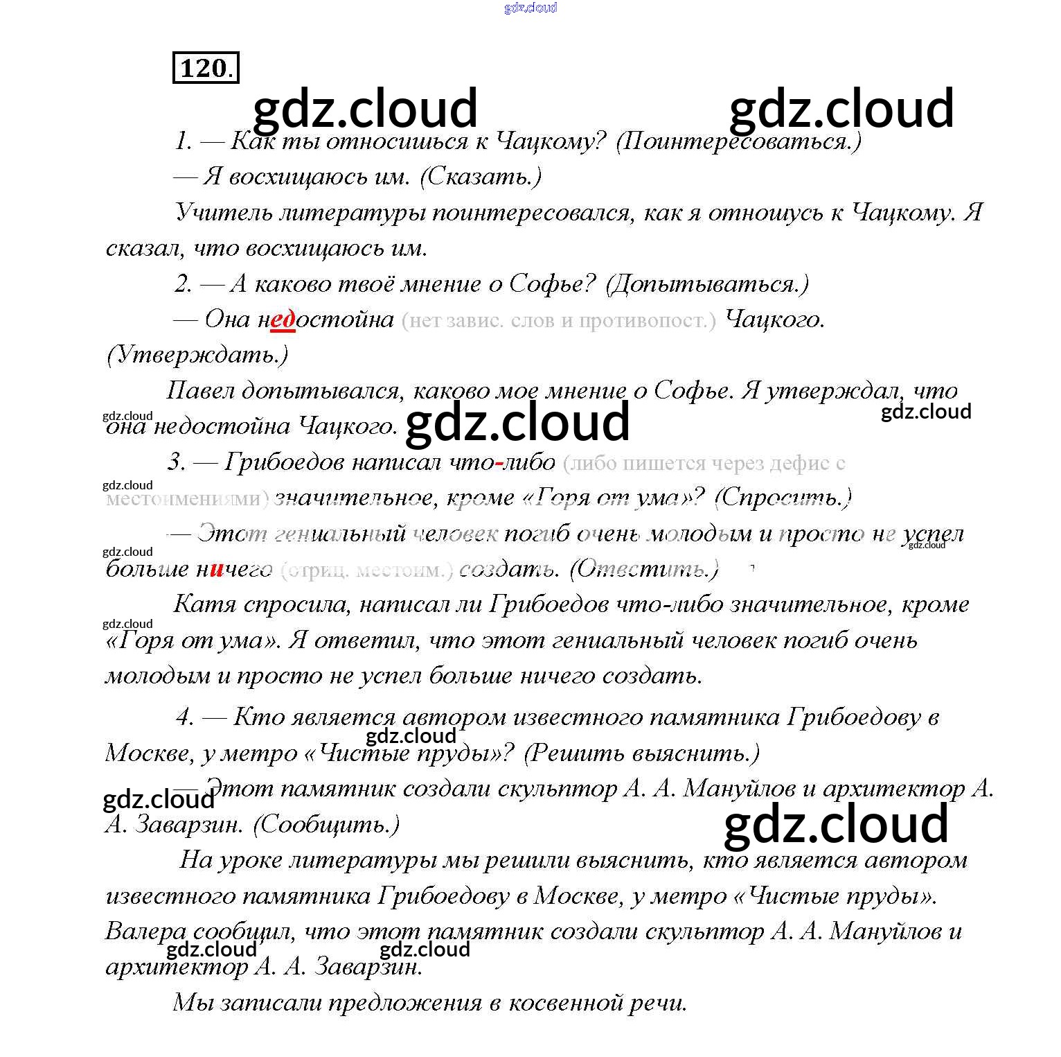 Ответ на задание 120 Учебник Русский язык за 9 (девятый) класс Тростенцова, Ладыженская, Дейкина, Александрова 2014