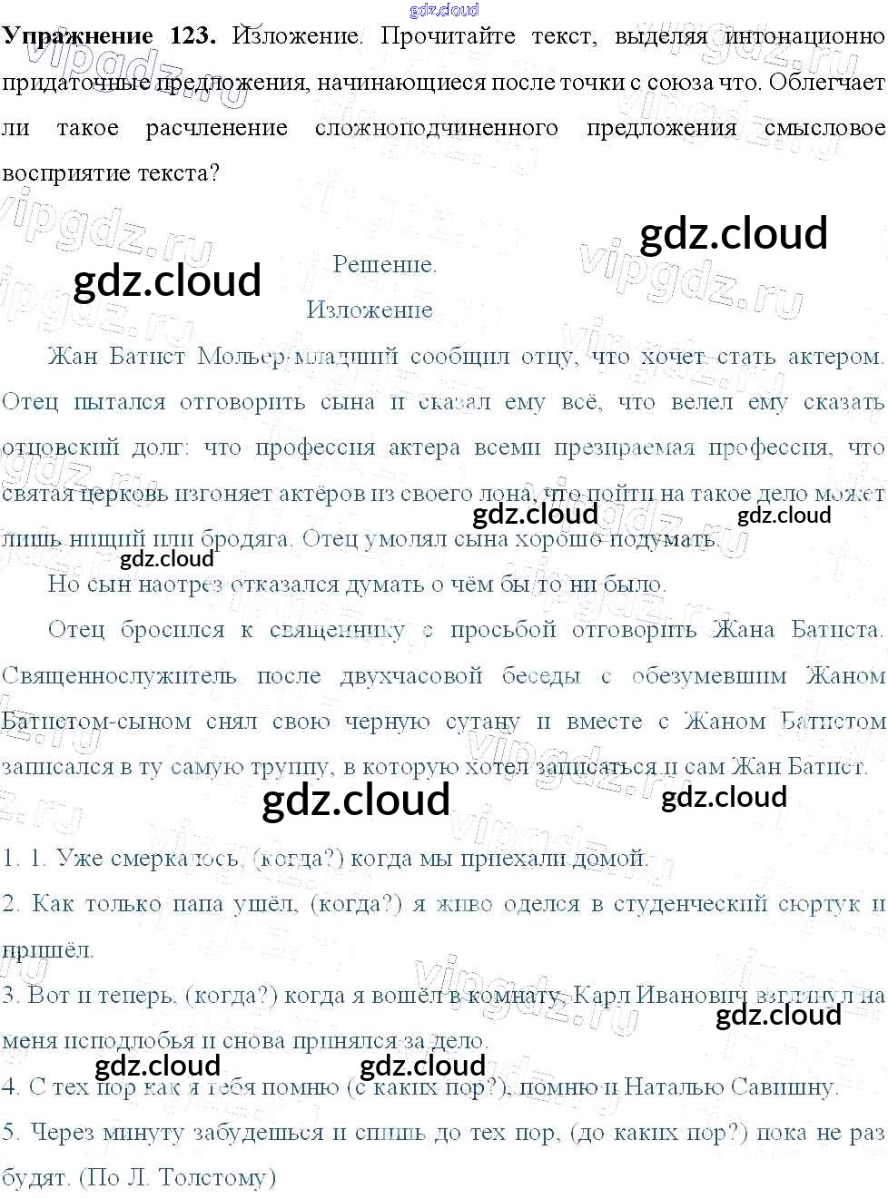 Ответ на задание 123 Учебник Русский язык за 9 (девятый) класс Тростенцова, Ладыженская, Дейкина, Александрова 2014