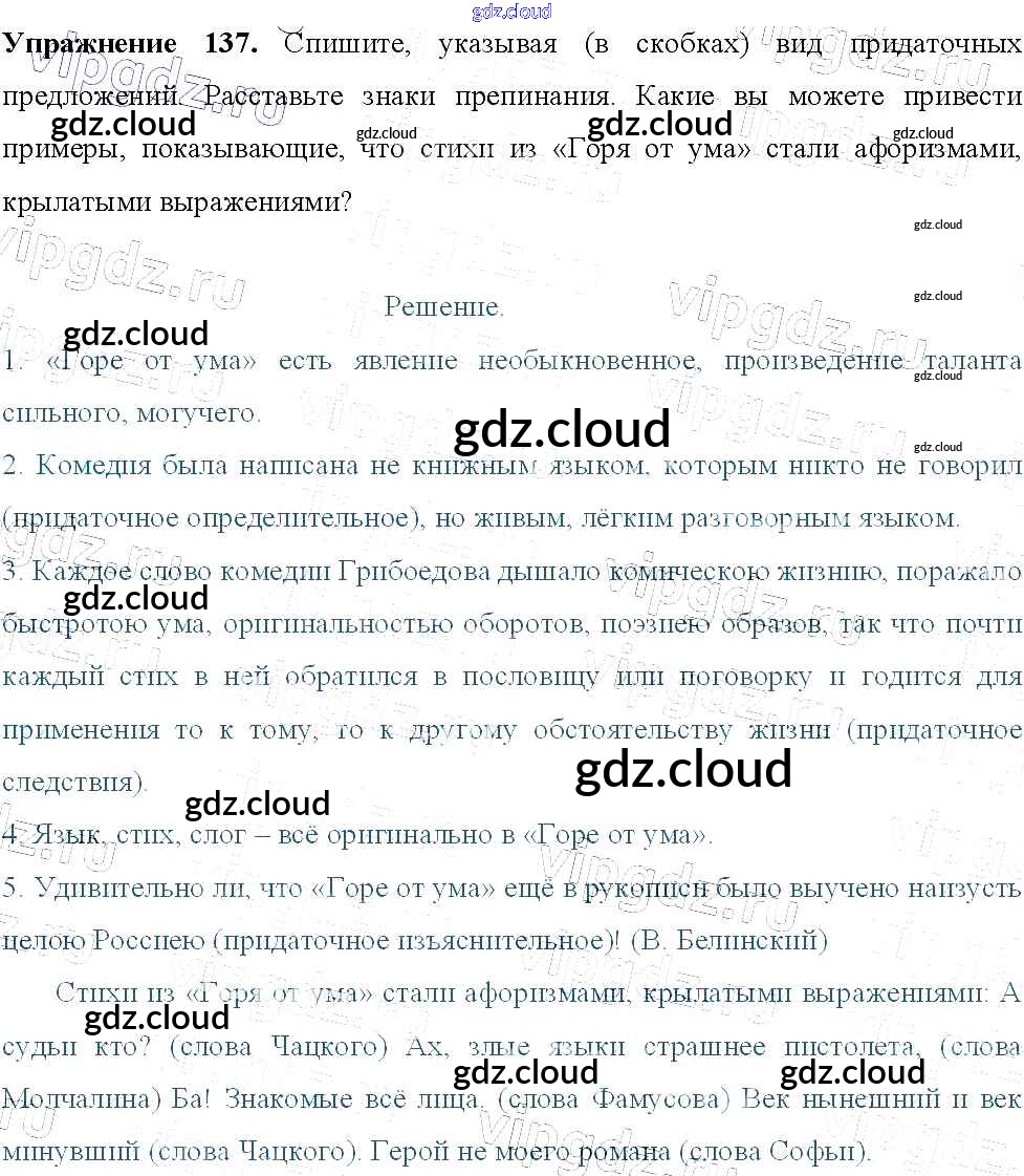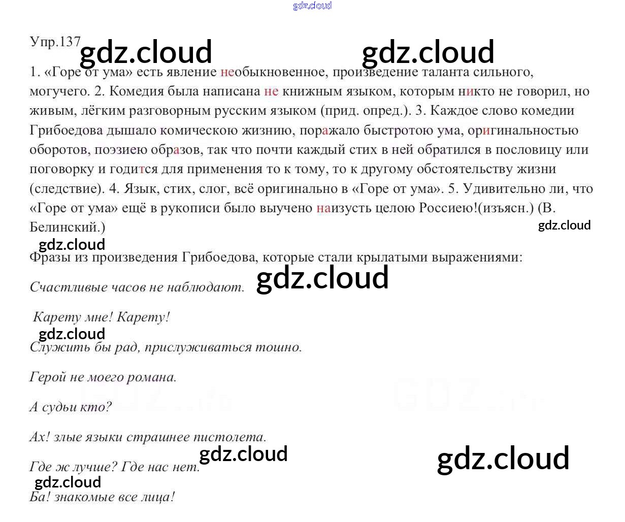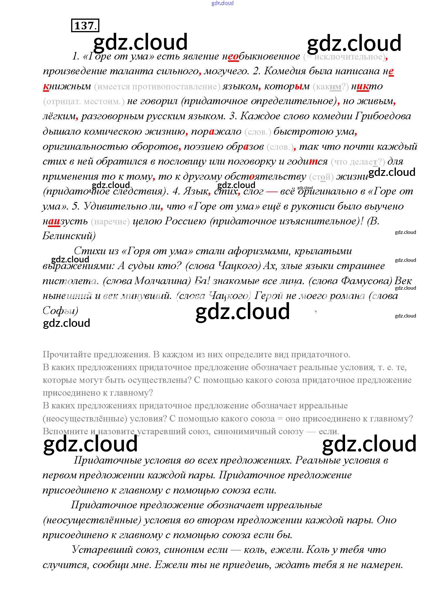 Ответ на задание 137 Учебник Русский язык за 9 (девятый) класс Тростенцова, Ладыженская, Дейкина, Александрова 2014