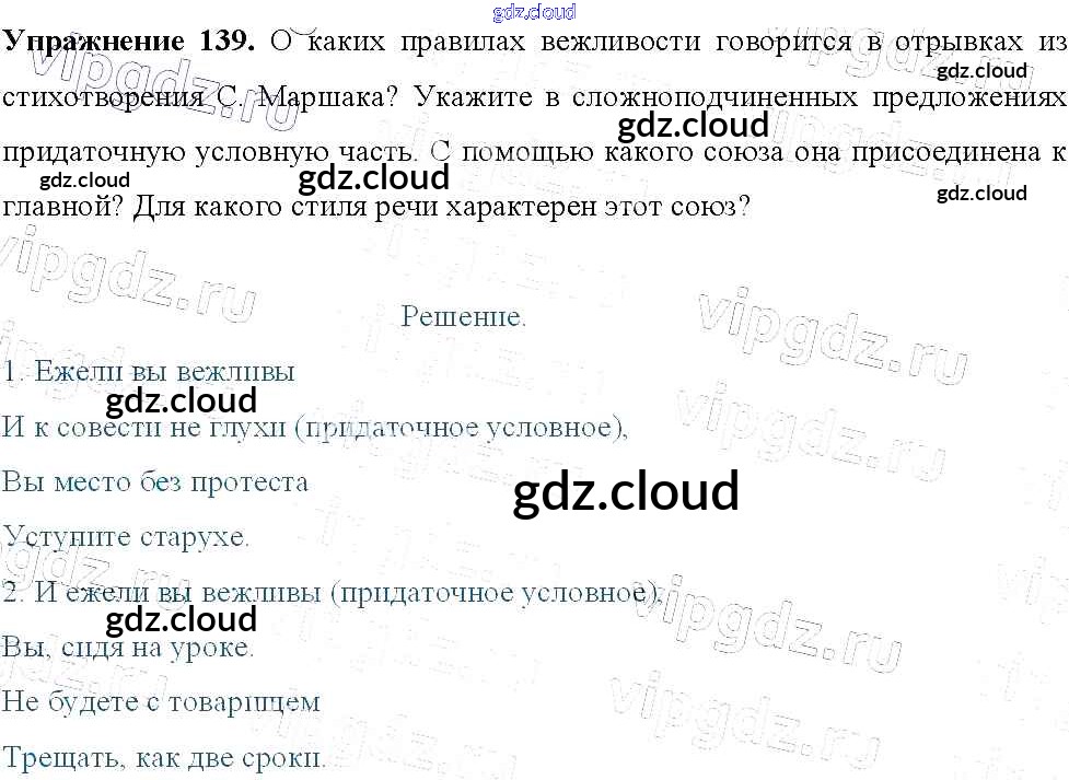 Ответ на задание 139 Учебник Русский язык за 9 (девятый) класс Тростенцова, Ладыженская, Дейкина, Александрова 2014