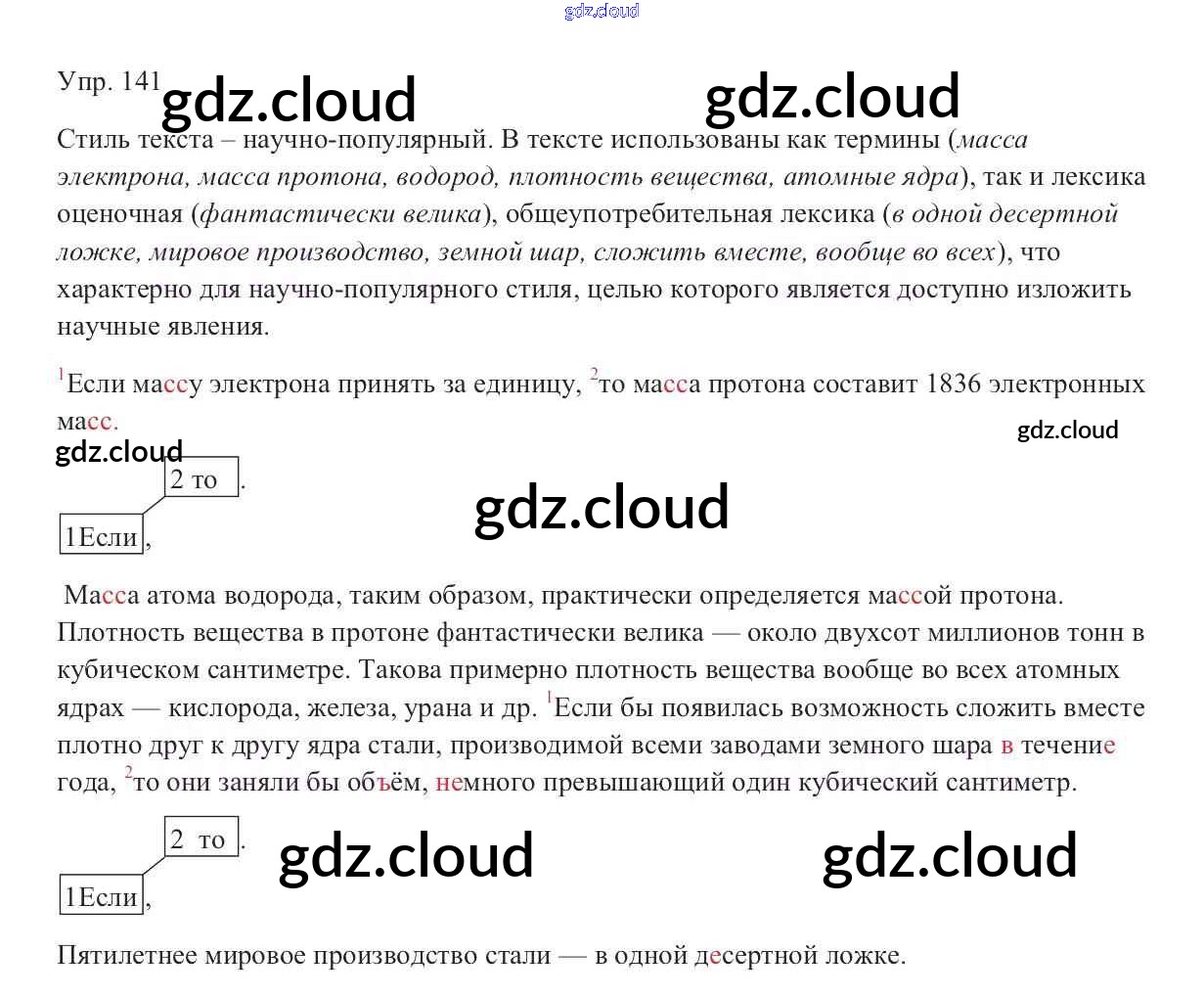 Ответ на задание 141 Учебник Русский язык за 9 (девятый) класс Тростенцова, Ладыженская, Дейкина, Александрова 2014