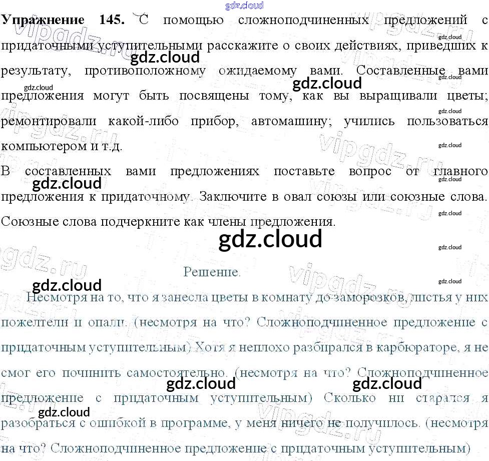 Ответ на задание 145 Учебник Русский язык за 9 (девятый) класс Тростенцова, Ладыженская, Дейкина, Александрова 2014