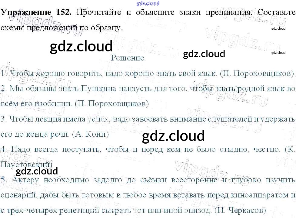 Ответ на задание 152 Учебник Русский язык за 9 (девятый) класс Тростенцова, Ладыженская, Дейкина, Александрова 2014