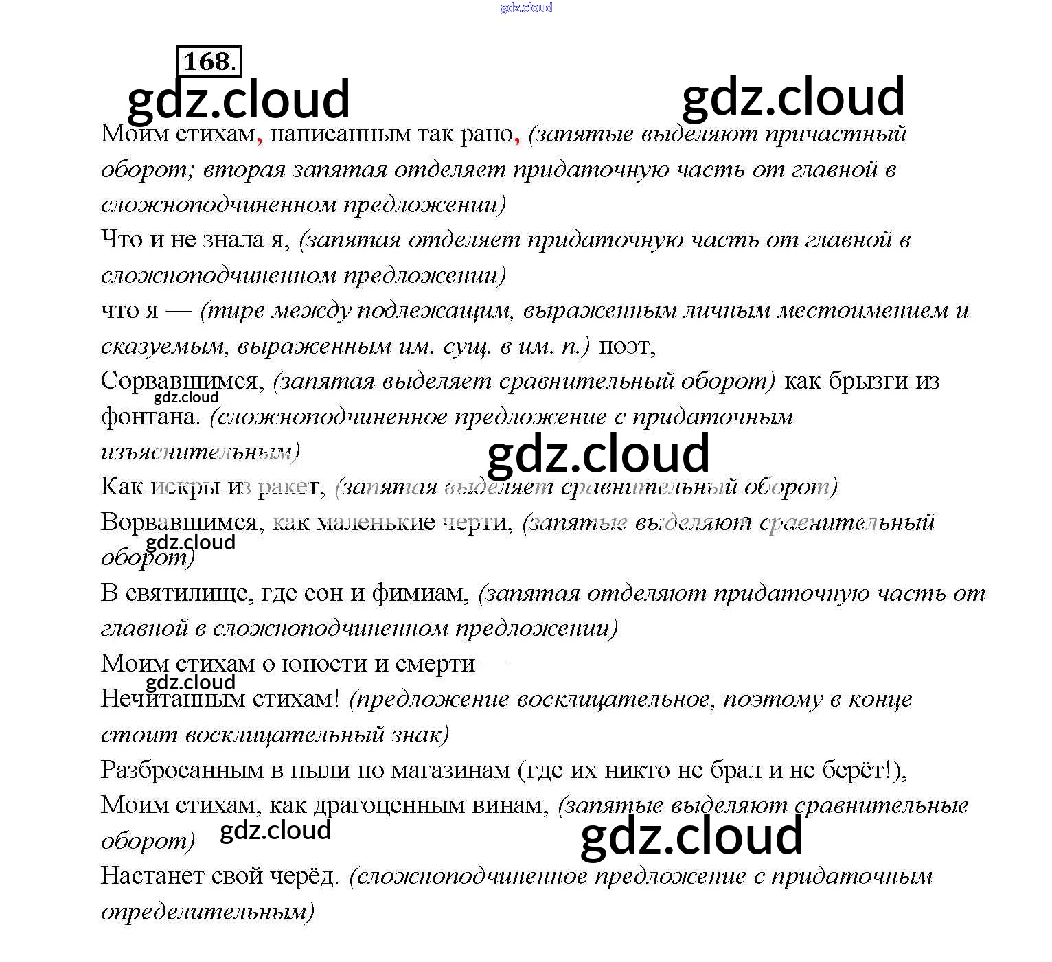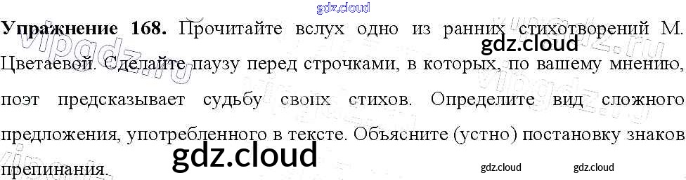 Ответ на задание 168 Учебник Русский язык за 9 (девятый) класс Тростенцова, Ладыженская, Дейкина, Александрова 2014