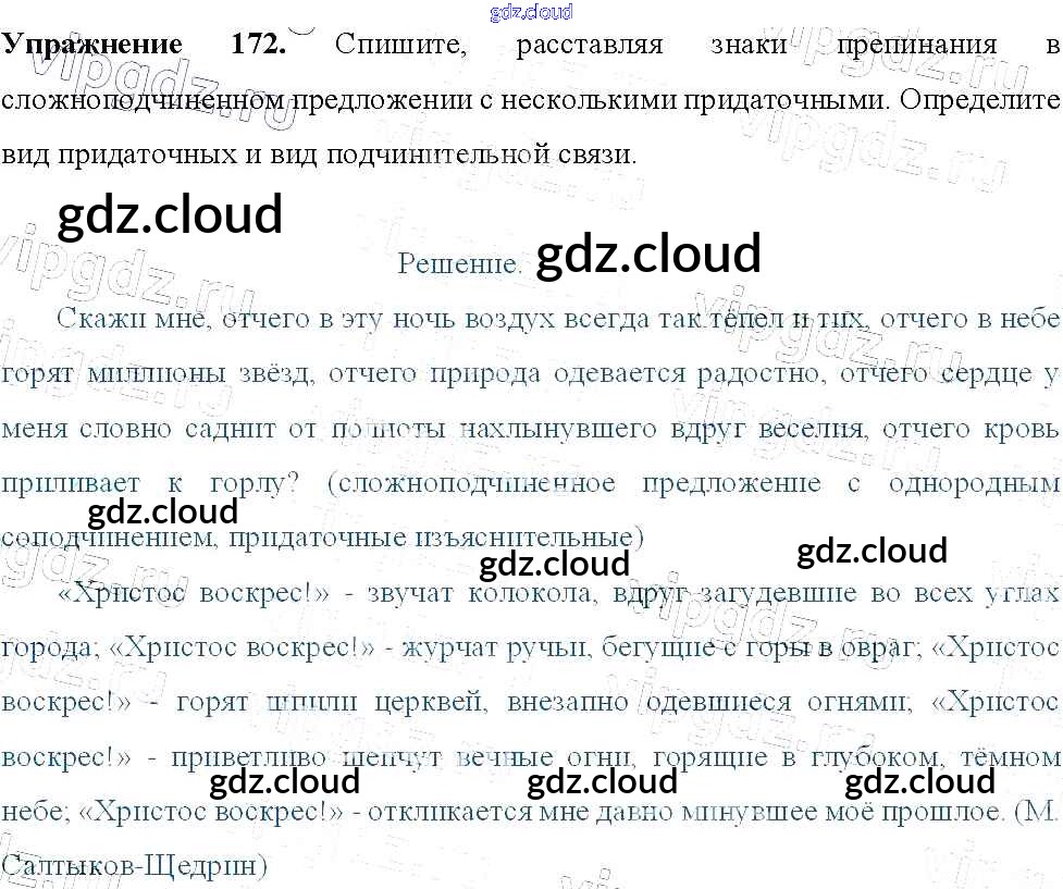 Ответ на задание 172 Учебник Русский язык за 9 (девятый) класс Тростенцова, Ладыженская, Дейкина, Александрова 2014