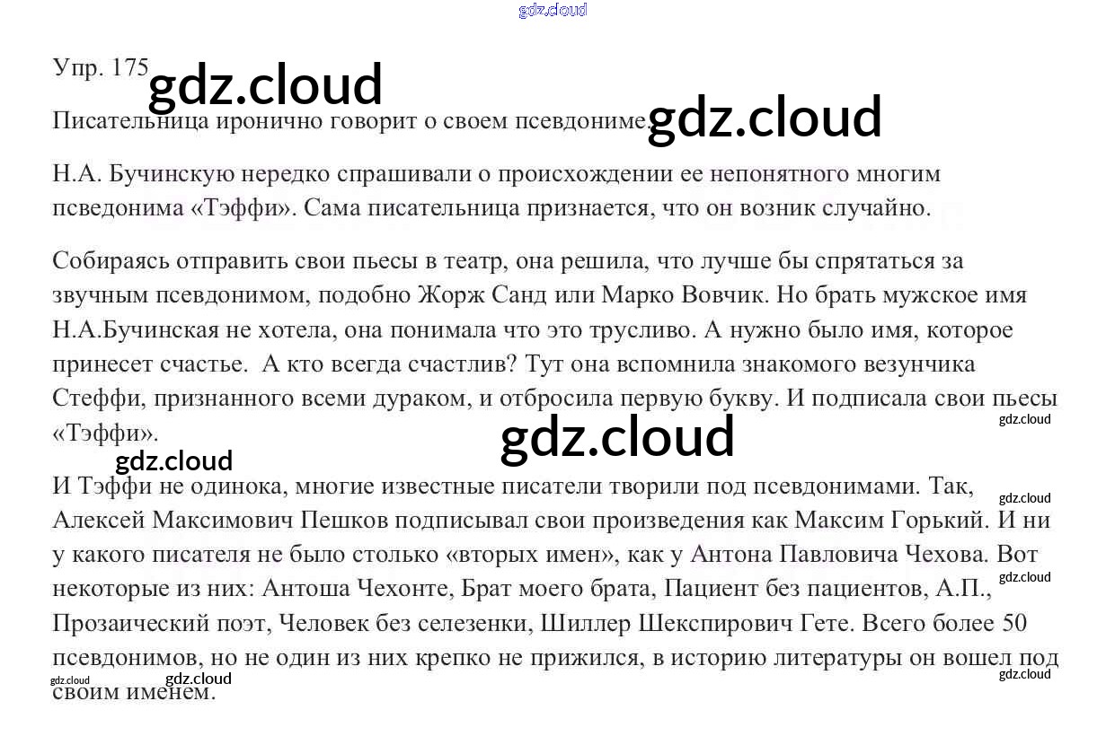 Ответ на задание 175 Учебник Русский язык за 9 (девятый) класс Тростенцова, Ладыженская, Дейкина, Александрова 2014