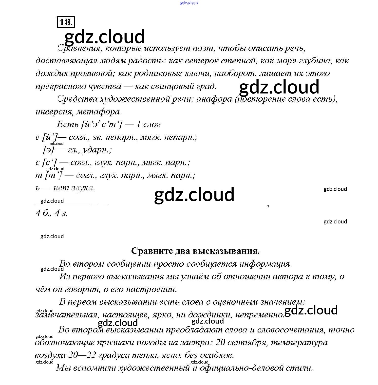 Ответ на задание 18 Учебник Русский язык за 9 (девятый) класс Тростенцова, Ладыженская, Дейкина, Александрова 2014