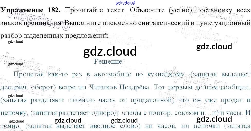 Ответ на задание 182 Учебник Русский язык за 9 (девятый) класс Тростенцова, Ладыженская, Дейкина, Александрова 2014