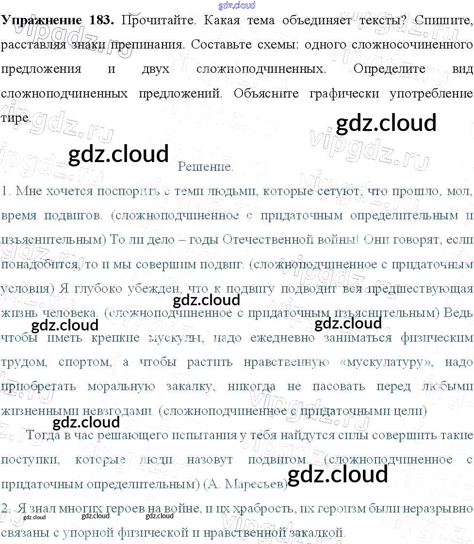 Ответ на задание 183 Учебник Русский язык за 9 (девятый) класс Тростенцова, Ладыженская, Дейкина, Александрова 2014