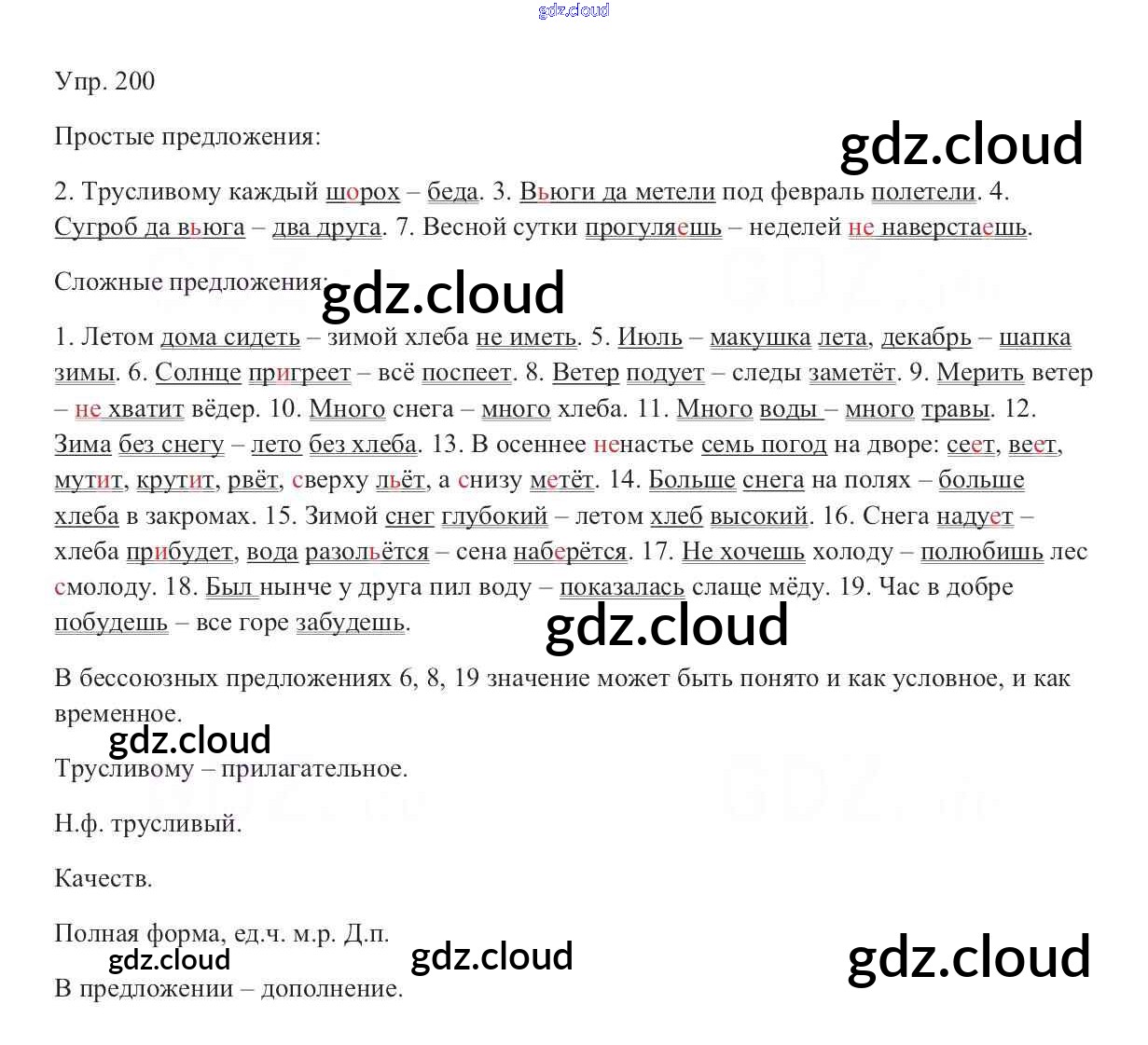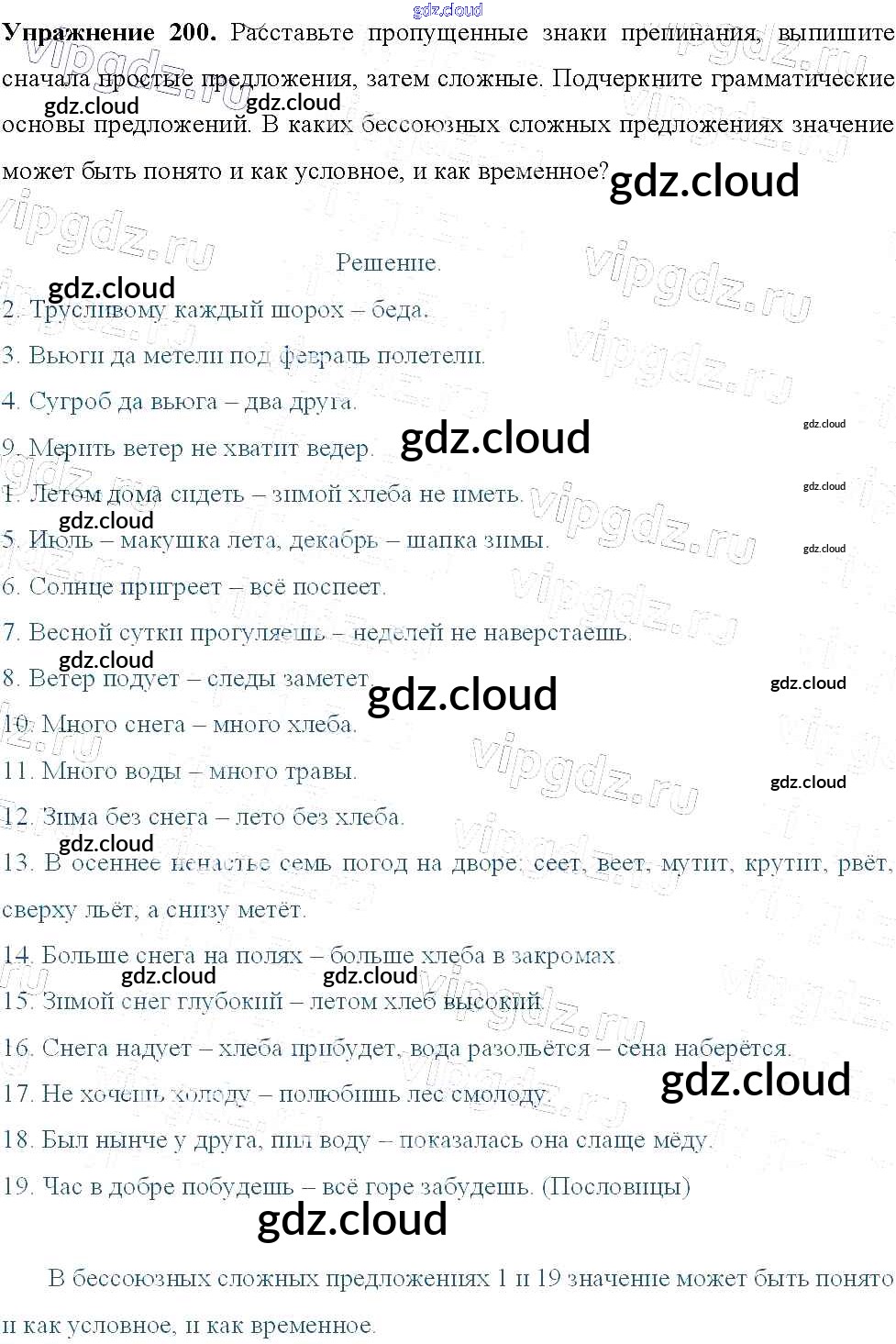Ответ на задание 200 Учебник Русский язык за 9 (девятый) класс Тростенцова, Ладыженская, Дейкина, Александрова 2014