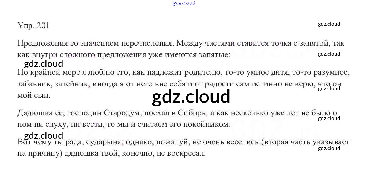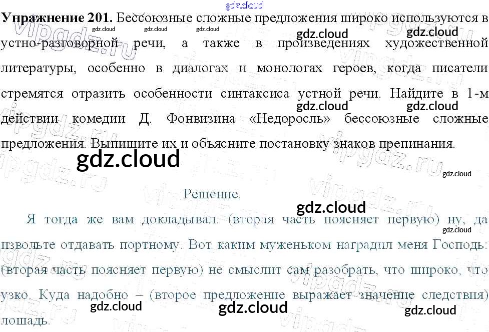 Ответ на задание 201 Учебник Русский язык за 9 (девятый) класс Тростенцова, Ладыженская, Дейкина, Александрова 2014