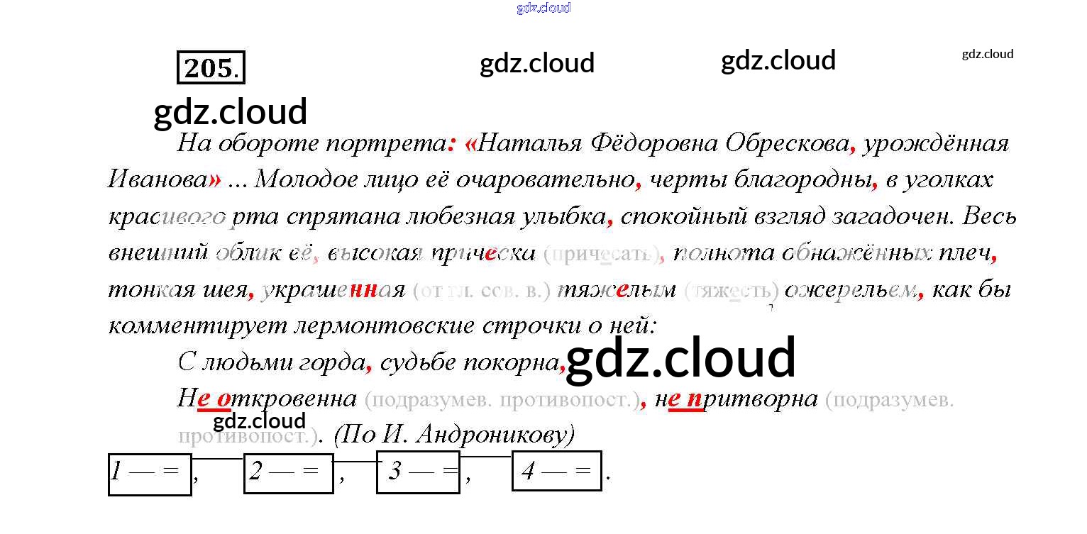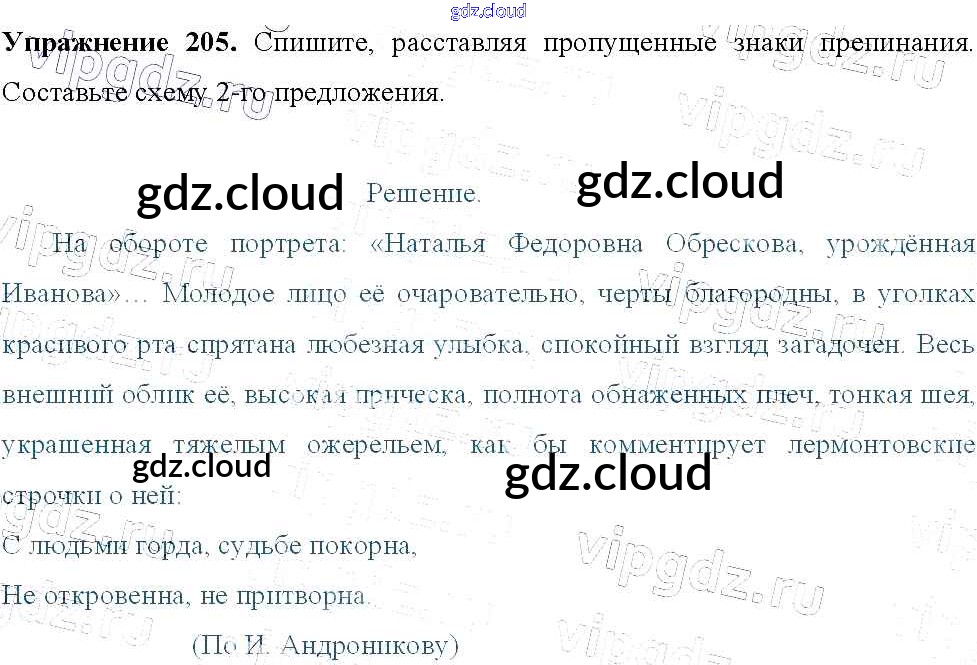 Ответ на задание 205 Учебник Русский язык за 9 (девятый) класс Тростенцова, Ладыженская, Дейкина, Александрова 2014