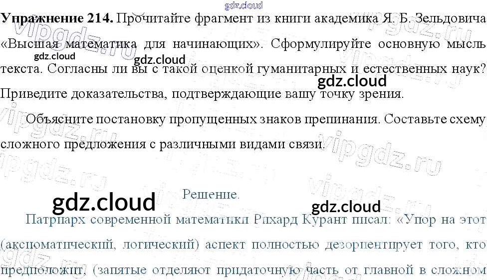 Ответ на задание 214 Учебник Русский язык за 9 (девятый) класс Тростенцова, Ладыженская, Дейкина, Александрова 2014