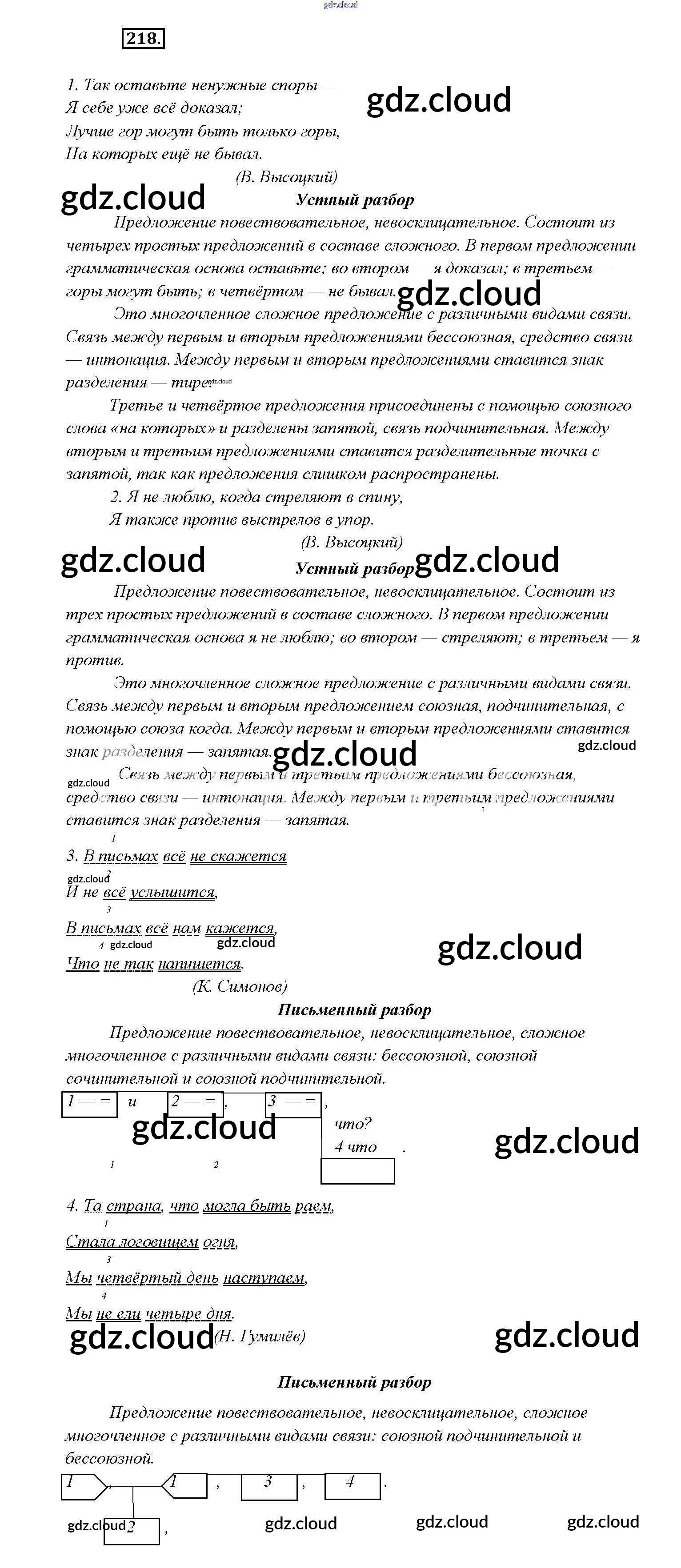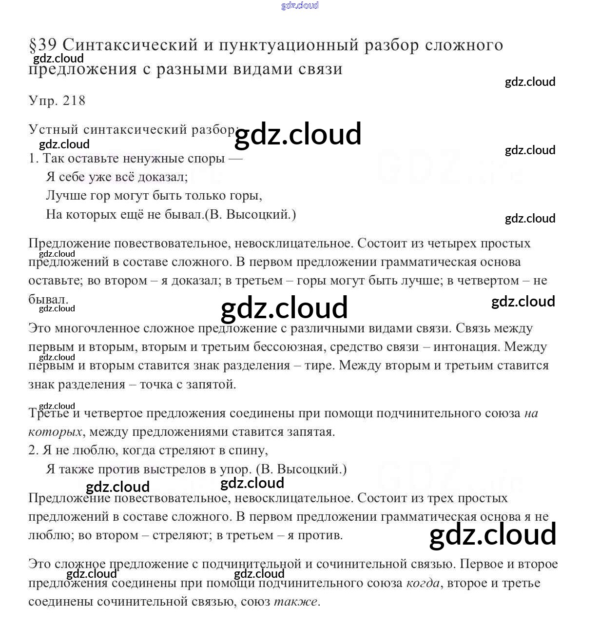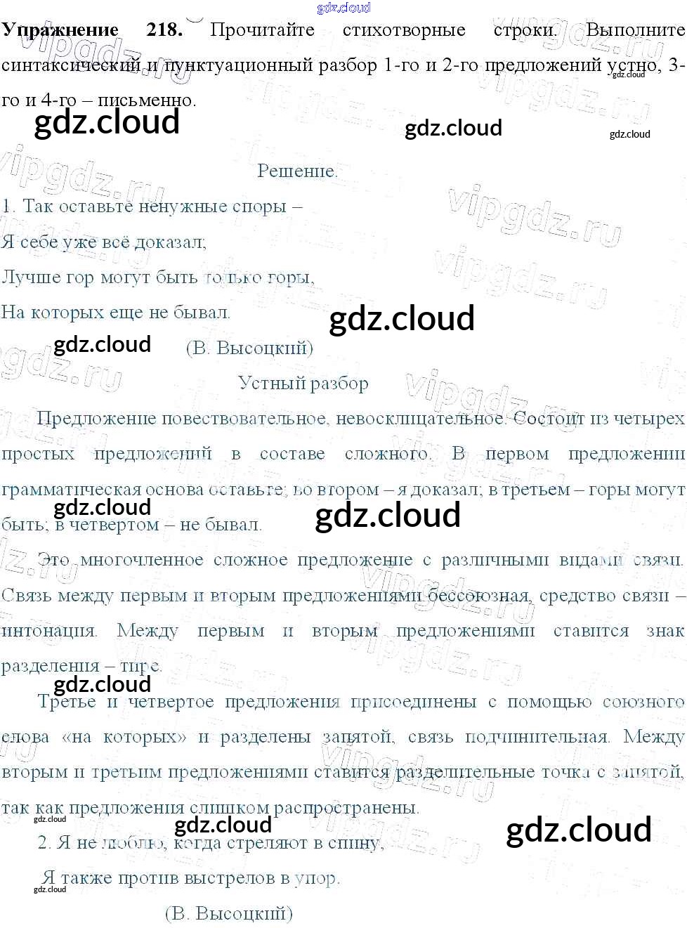Ответ на задание 218 Учебник Русский язык за 9 (девятый) класс Тростенцова, Ладыженская, Дейкина, Александрова 2014
