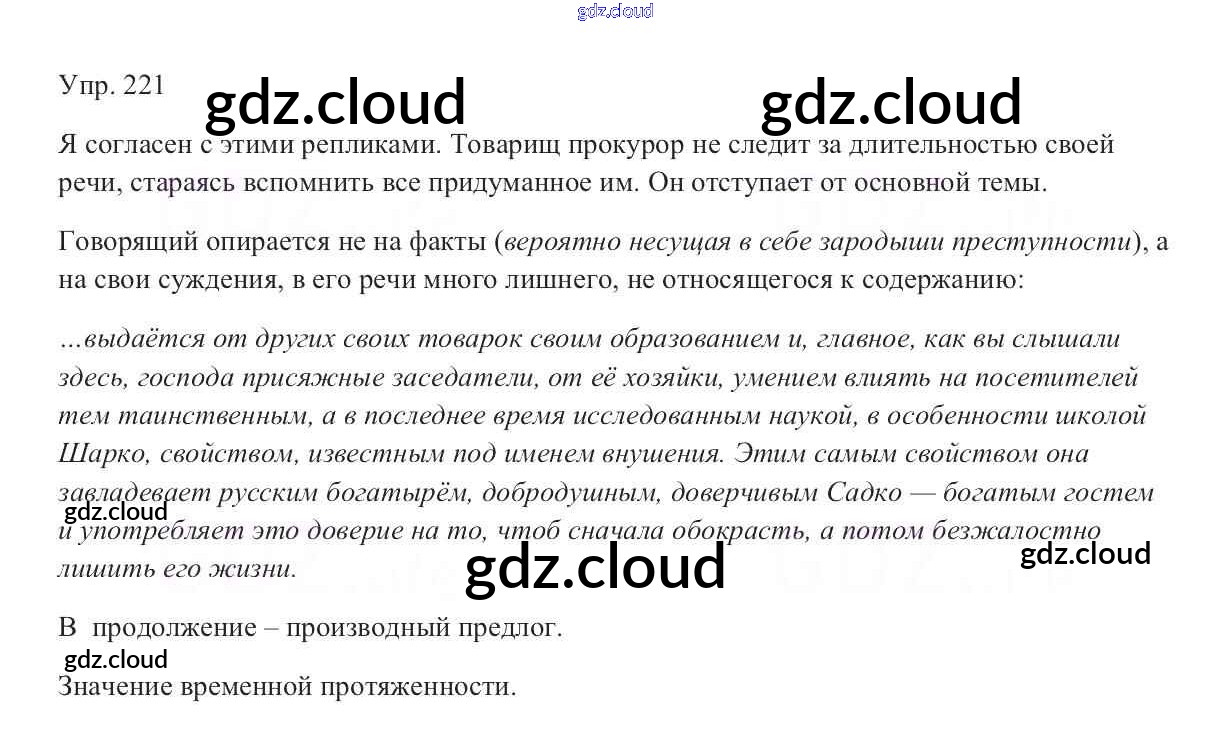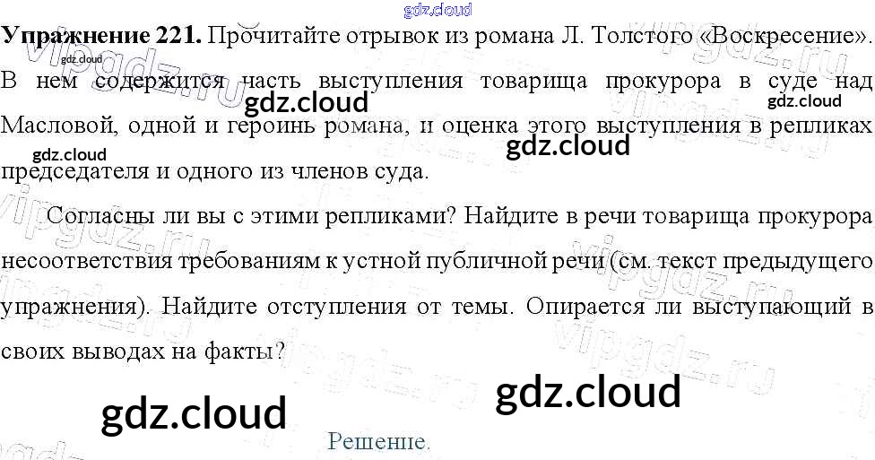 Ответ на задание 221 Учебник Русский язык за 9 (девятый) класс Тростенцова, Ладыженская, Дейкина, Александрова 2014