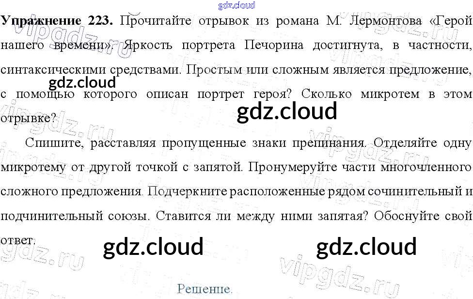 Ответ на задание 223 Учебник Русский язык за 9 (девятый) класс Тростенцова, Ладыженская, Дейкина, Александрова 2014