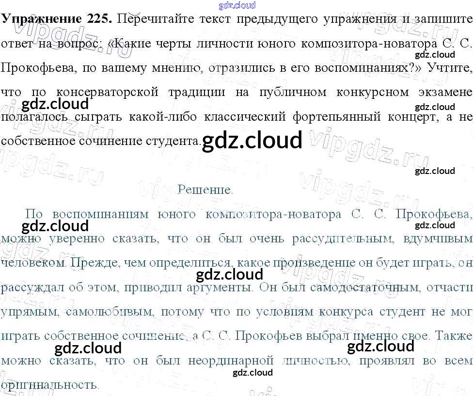 Ответ на задание 225 Учебник Русский язык за 9 (девятый) класс Тростенцова, Ладыженская, Дейкина, Александрова 2014