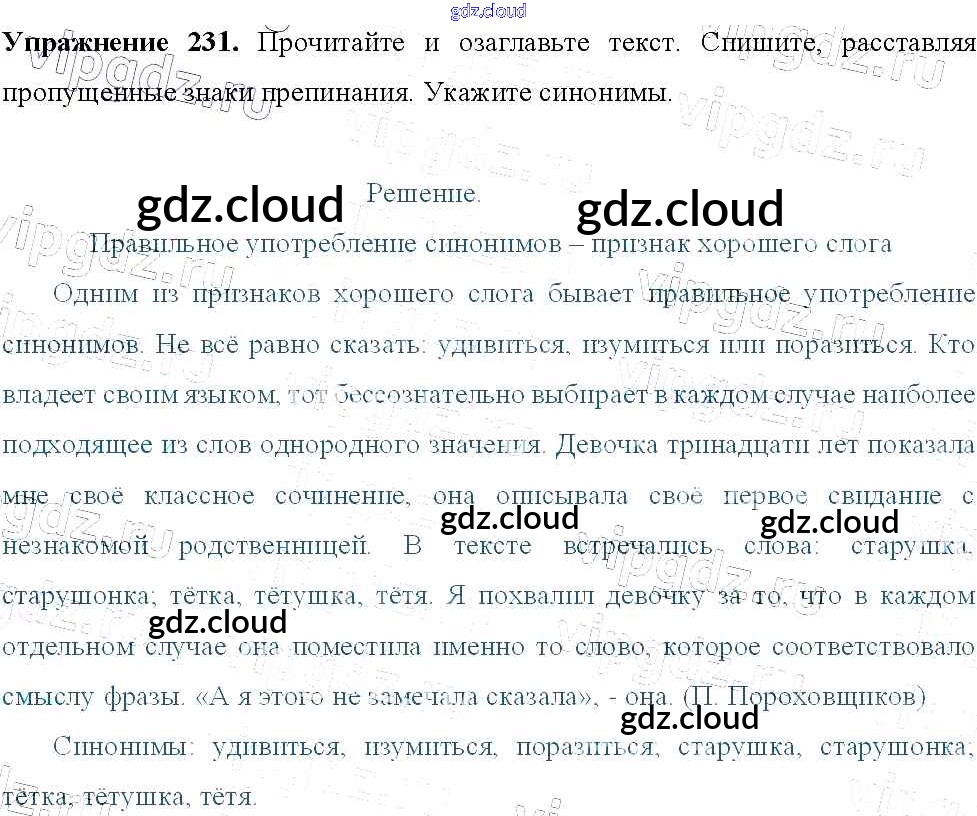 Ответ на задание 231 Учебник Русский язык за 9 (девятый) класс Тростенцова, Ладыженская, Дейкина, Александрова 2014