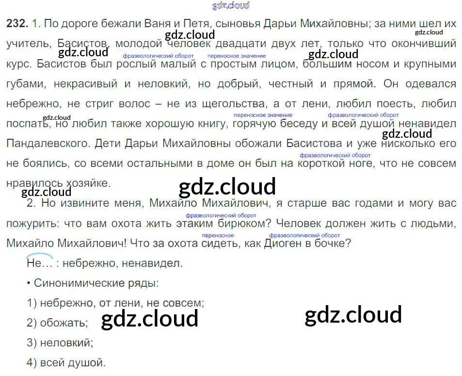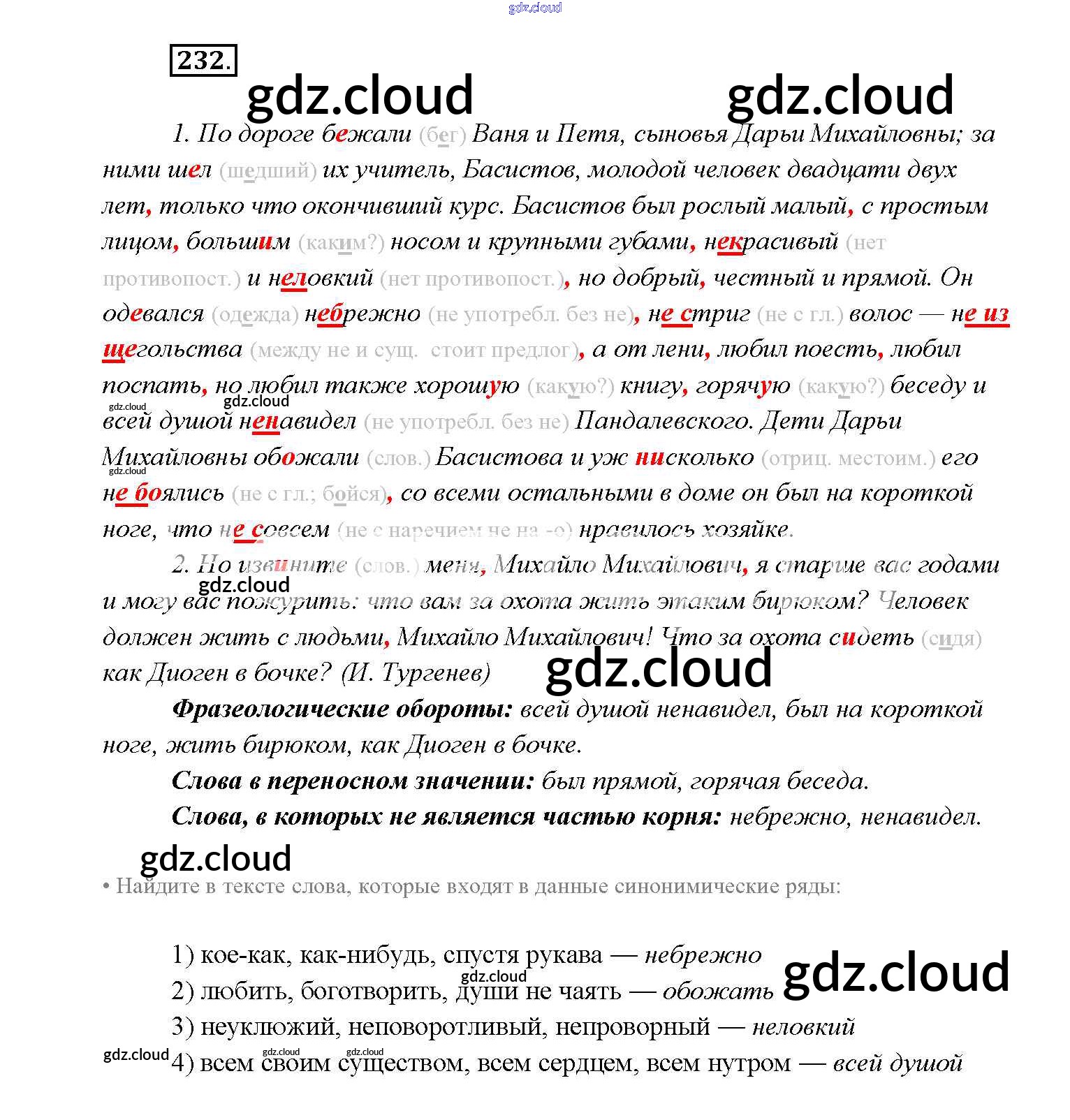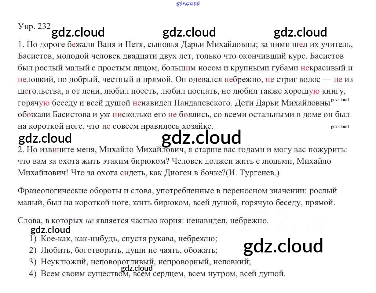 Ответ на задание 232 Учебник Русский язык за 9 (девятый) класс Тростенцова, Ладыженская, Дейкина, Александрова 2014
