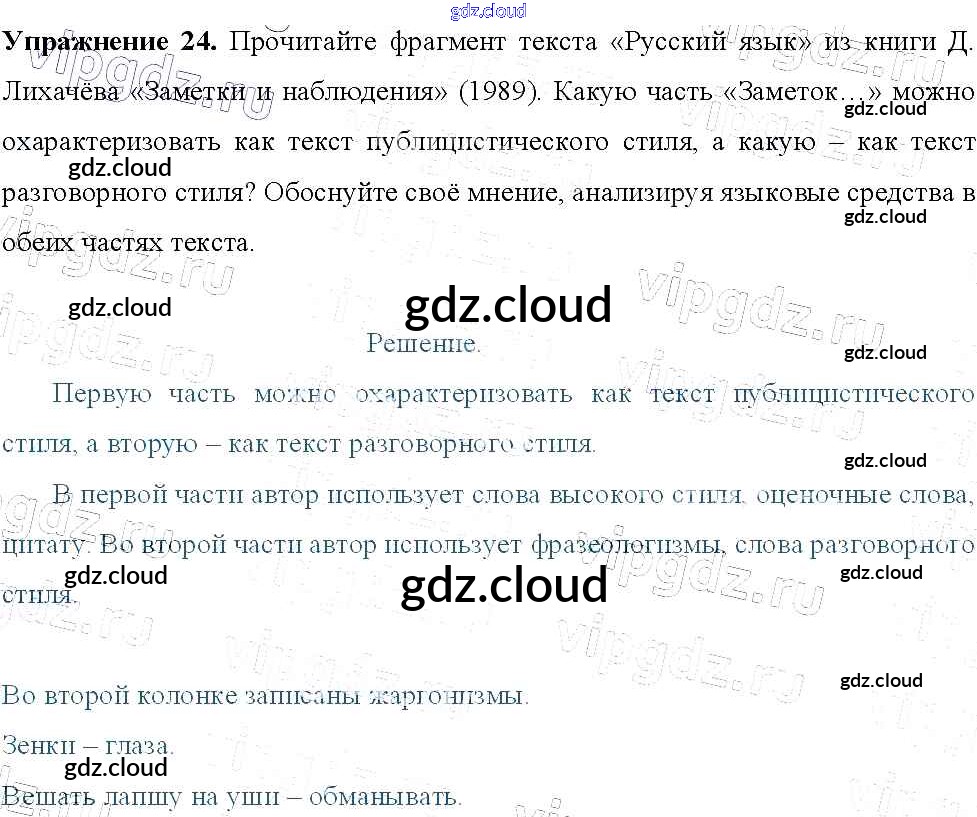 Ответ на задание 24 Учебник Русский язык за 9 (девятый) класс Тростенцова, Ладыженская, Дейкина, Александрова 2014