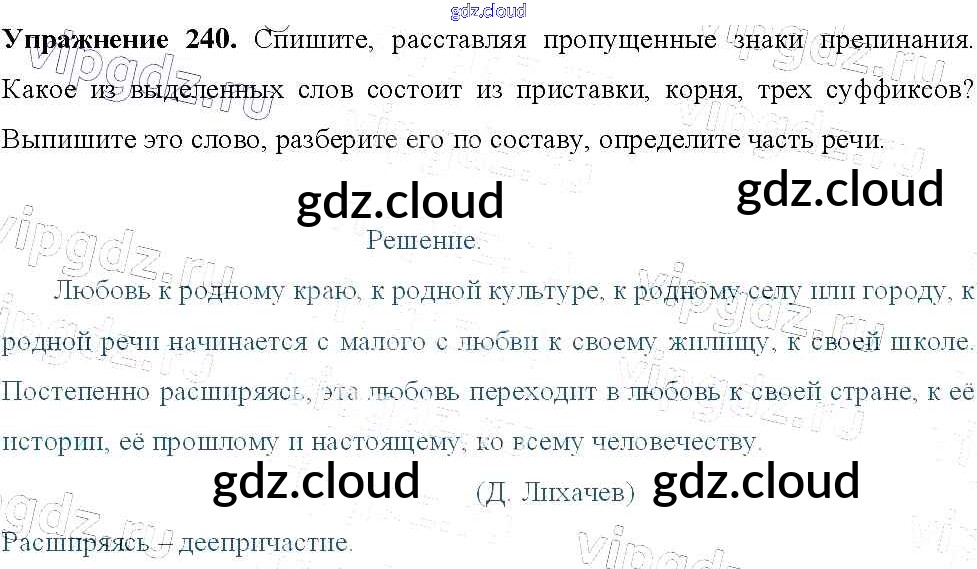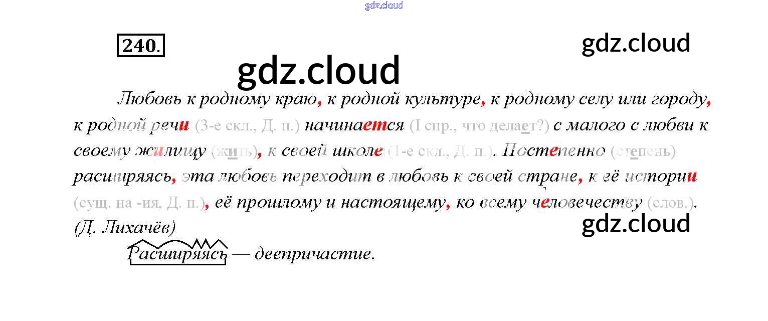 Ответ на задание 240 Учебник Русский язык за 9 (девятый) класс Тростенцова, Ладыженская, Дейкина, Александрова 2014