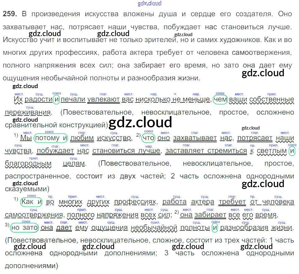 Ответ на задание 259 Учебник Русский язык за 9 (девятый) класс Тростенцова, Ладыженская, Дейкина, Александрова 2014