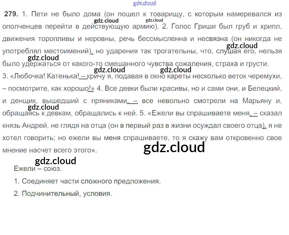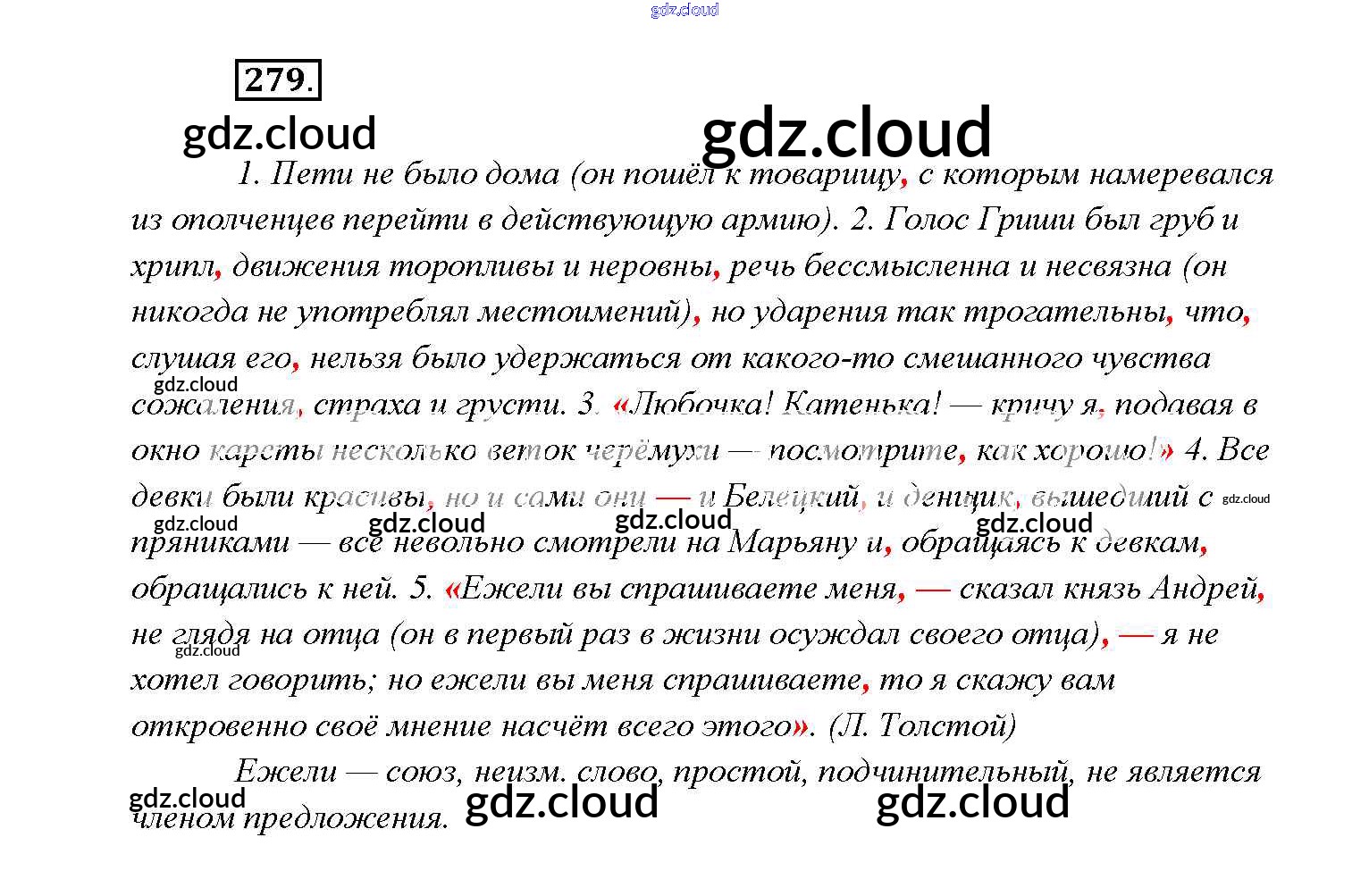 Ответ на задание 279 Учебник Русский язык за 9 (девятый) класс Тростенцова, Ладыженская, Дейкина, Александрова 2014