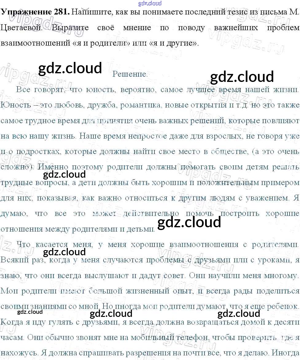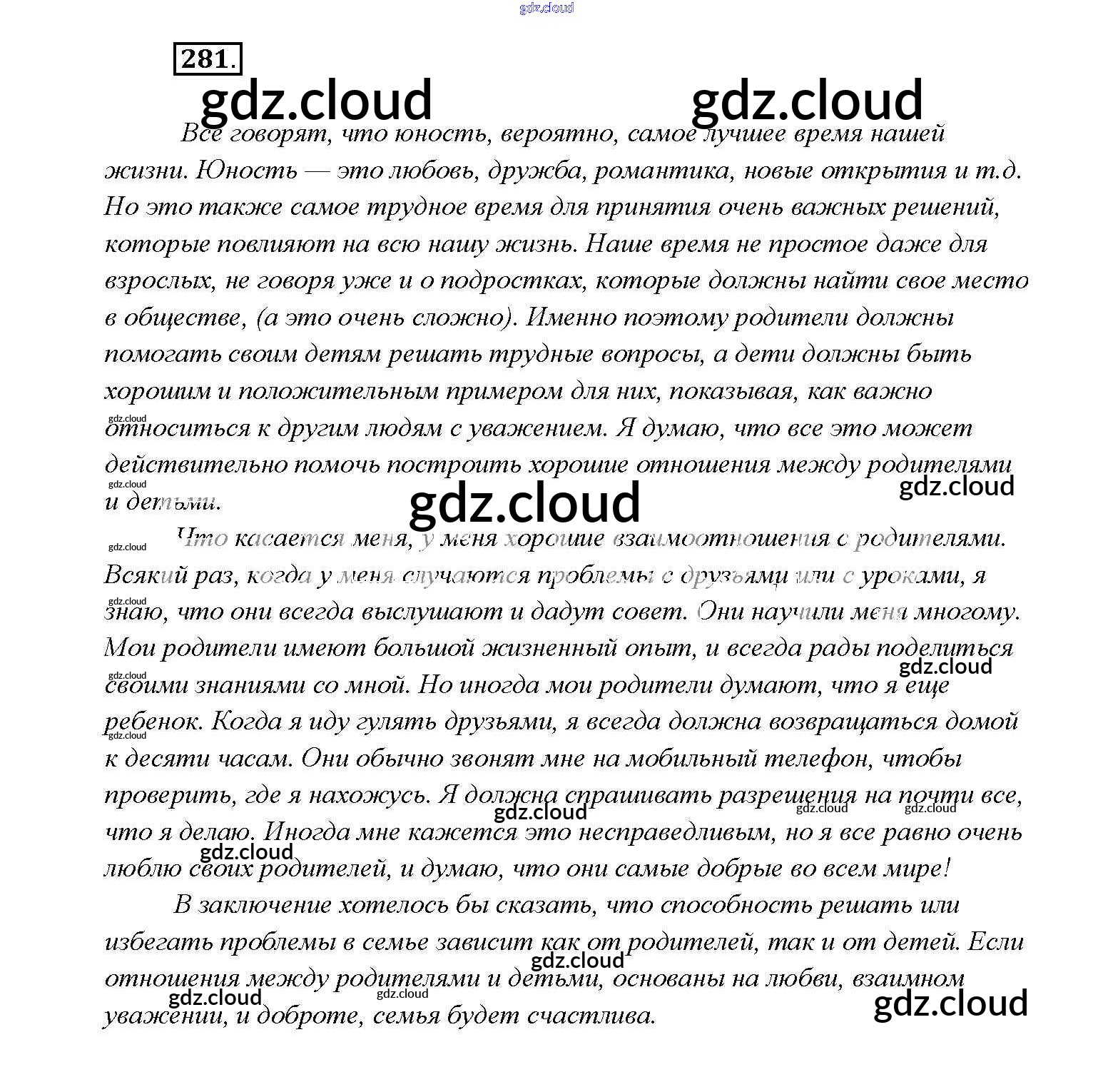 Ответ на задание 281 Учебник Русский язык за 9 (девятый) класс Тростенцова, Ладыженская, Дейкина, Александрова 2014