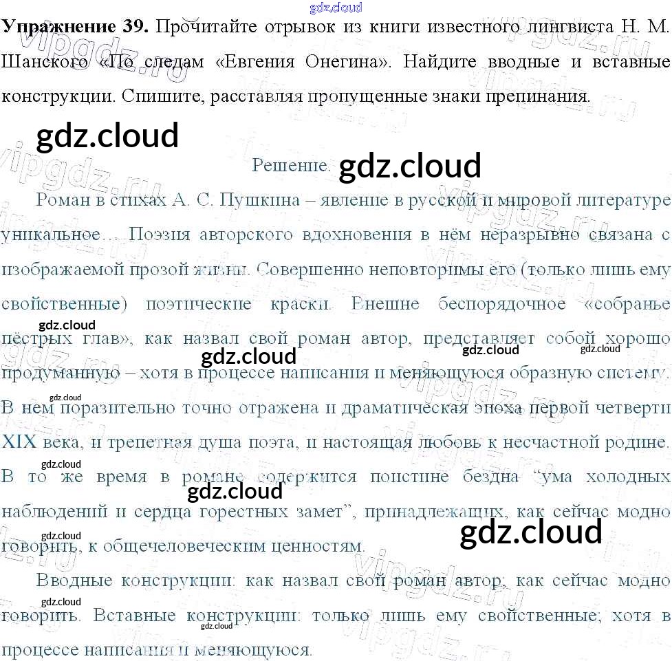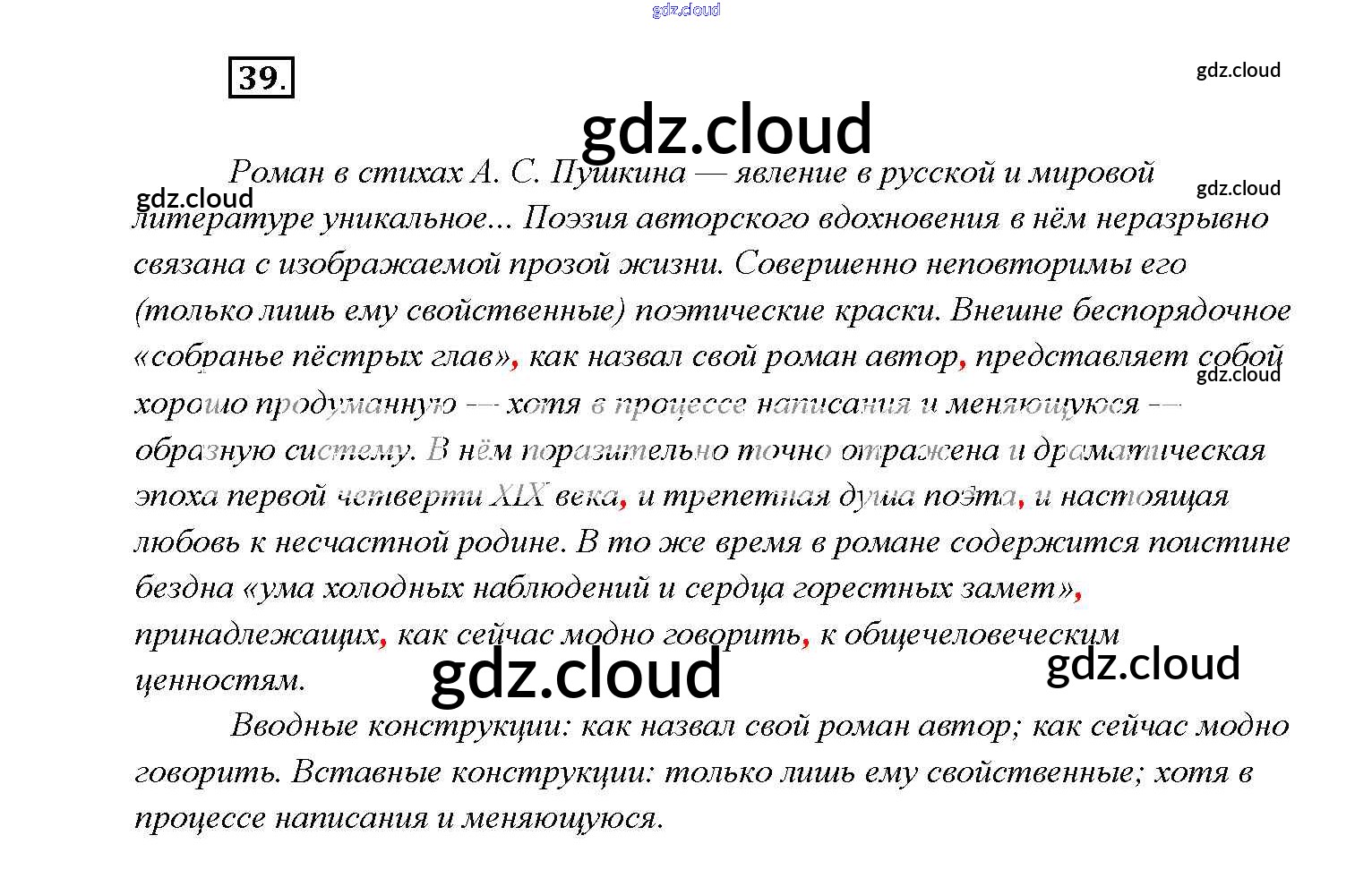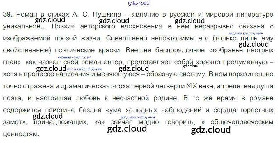 Ответ на задание 39 Учебник Русский язык за 9 (девятый) класс Тростенцова, Ладыженская, Дейкина, Александрова 2014