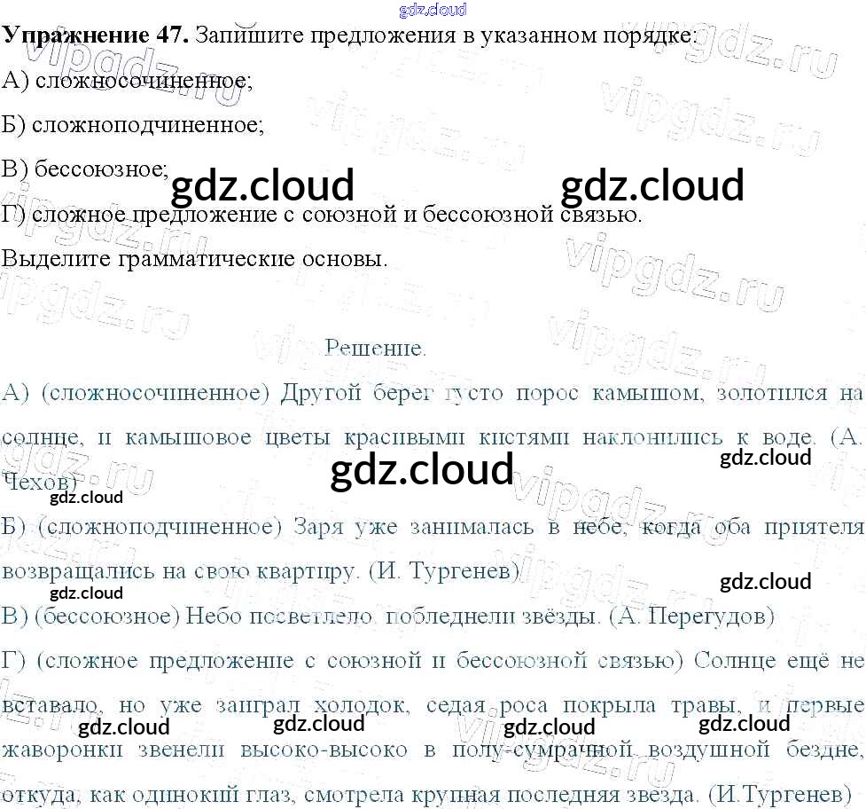 Ответ на задание 47 Учебник Русский язык за 9 (девятый) класс Тростенцова, Ладыженская, Дейкина, Александрова 2014