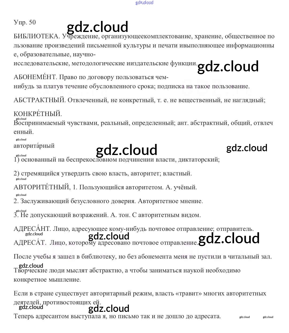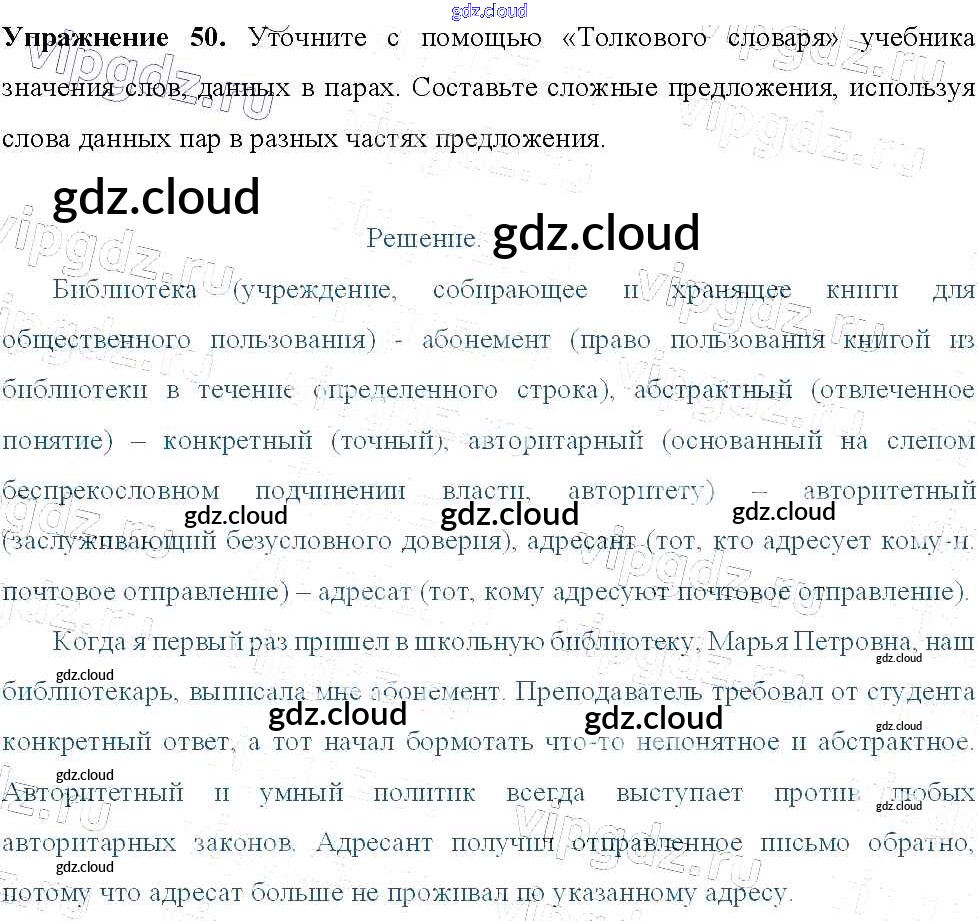 Ответ на задание 50 Учебник Русский язык за 9 (девятый) класс Тростенцова, Ладыженская, Дейкина, Александрова 2014