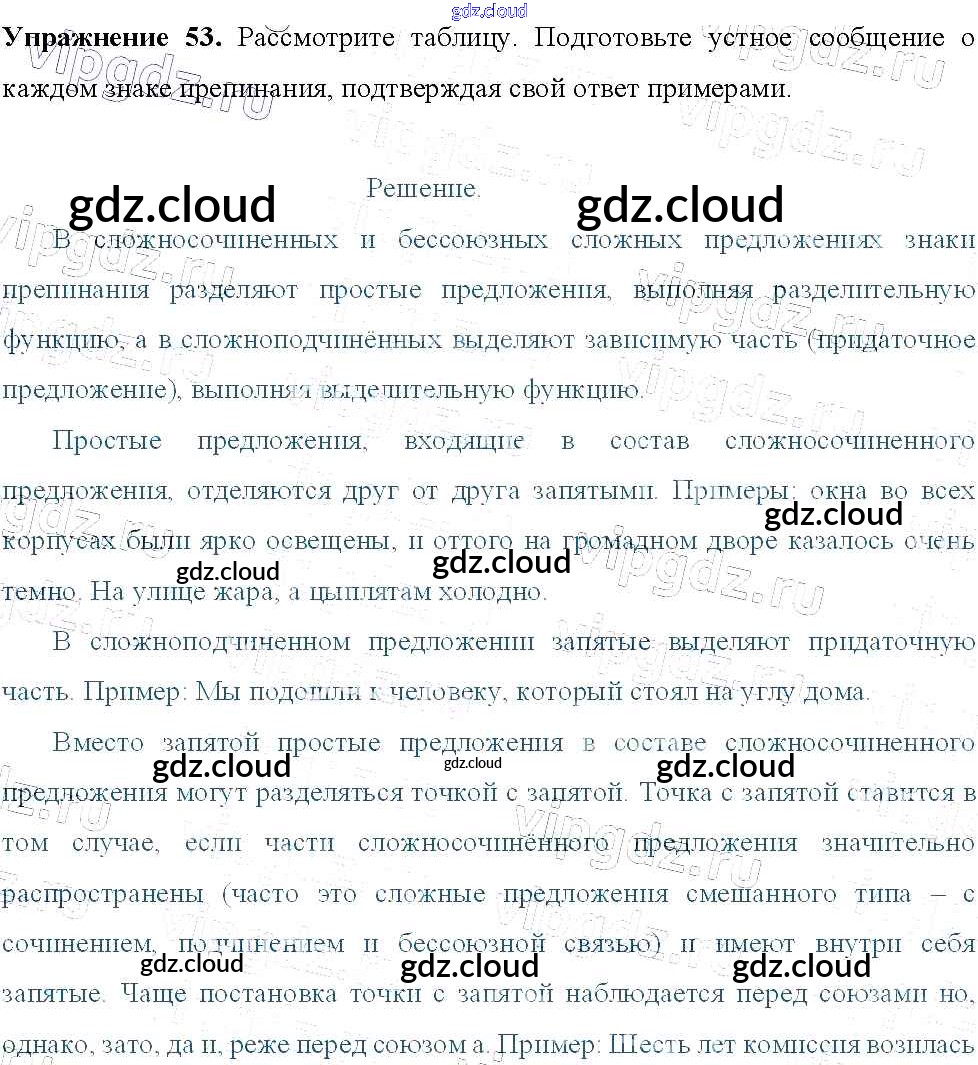 Ответ на задание 53 Учебник Русский язык за 9 (девятый) класс Тростенцова, Ладыженская, Дейкина, Александрова 2014