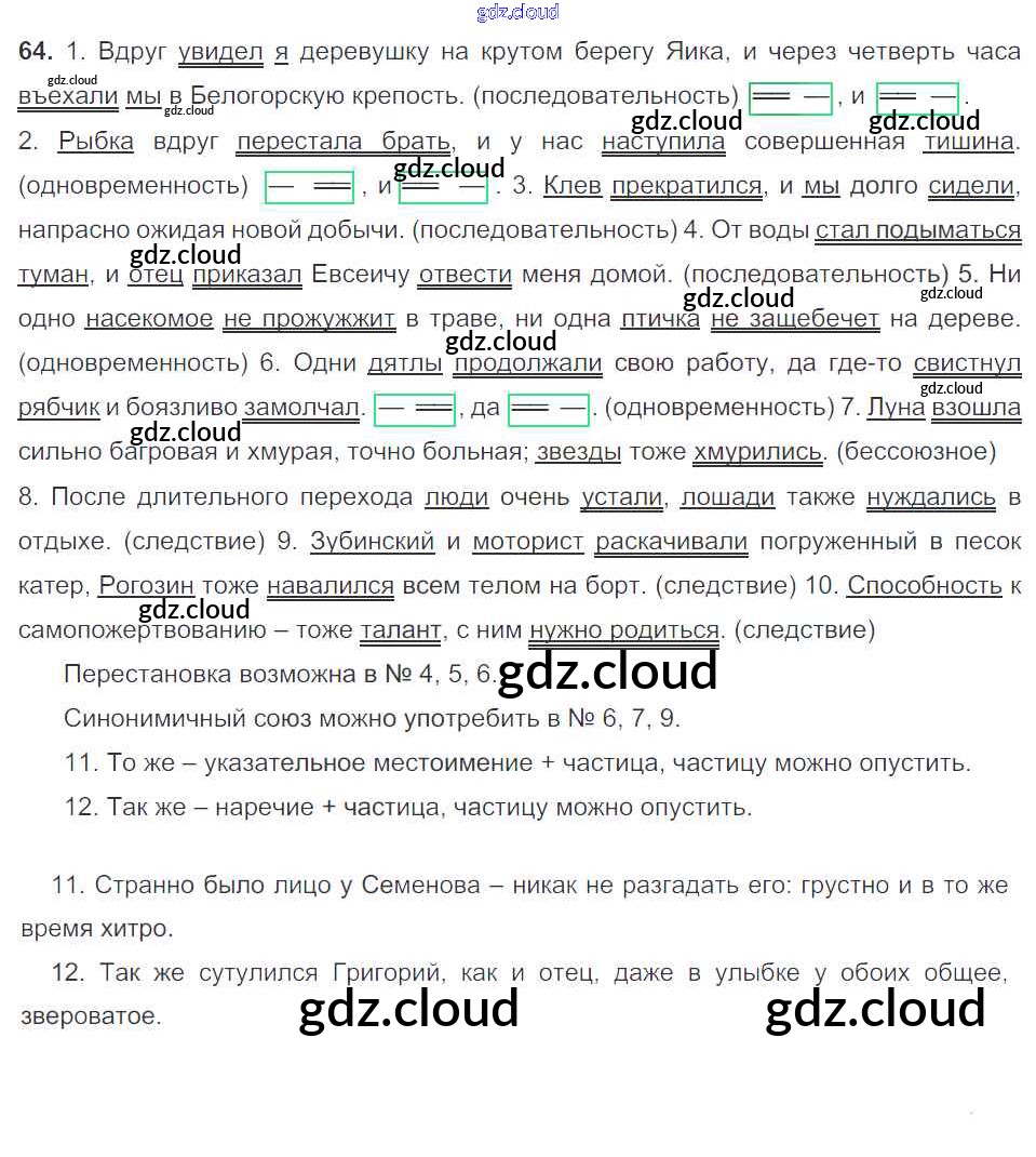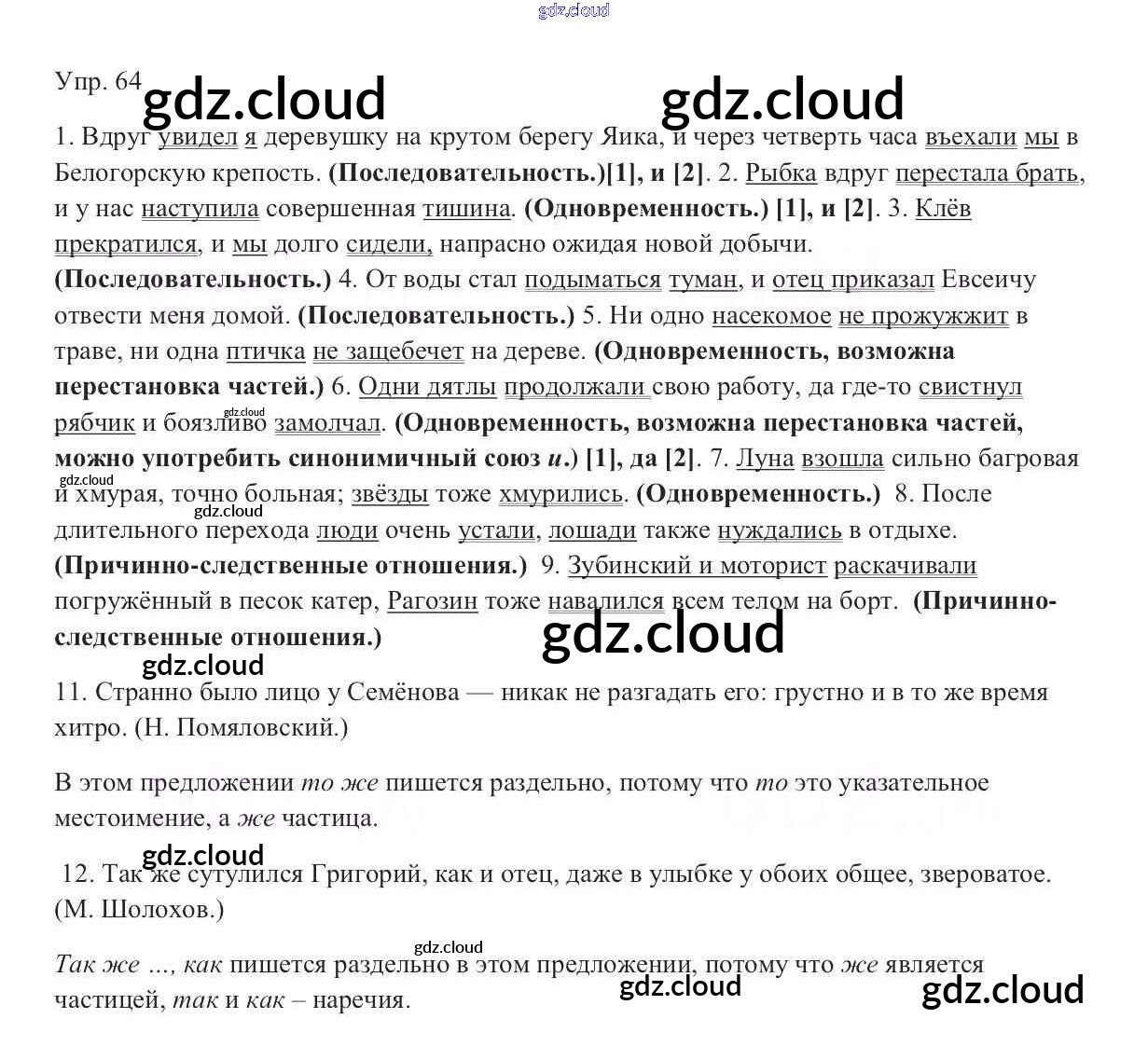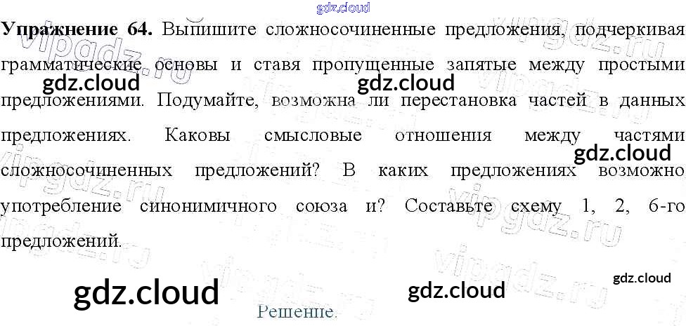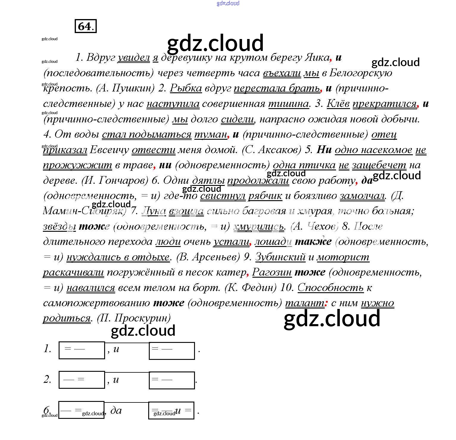 Ответ на задание 64 Учебник Русский язык за 9 (девятый) класс Тростенцова, Ладыженская, Дейкина, Александрова 2014