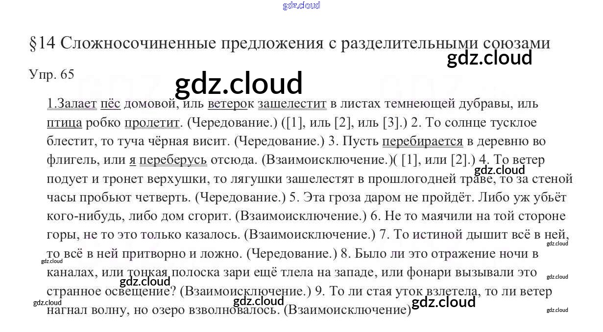 Ответ на задание 65 Учебник Русский язык за 9 (девятый) класс Тростенцова, Ладыженская, Дейкина, Александрова 2014