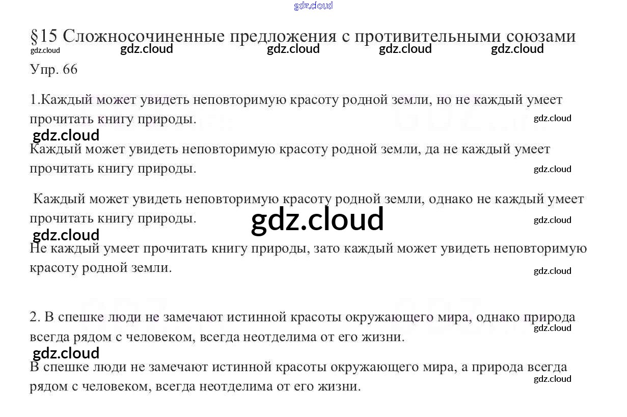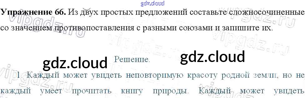 Ответ на задание 66 Учебник Русский язык за 9 (девятый) класс Тростенцова, Ладыженская, Дейкина, Александрова 2014