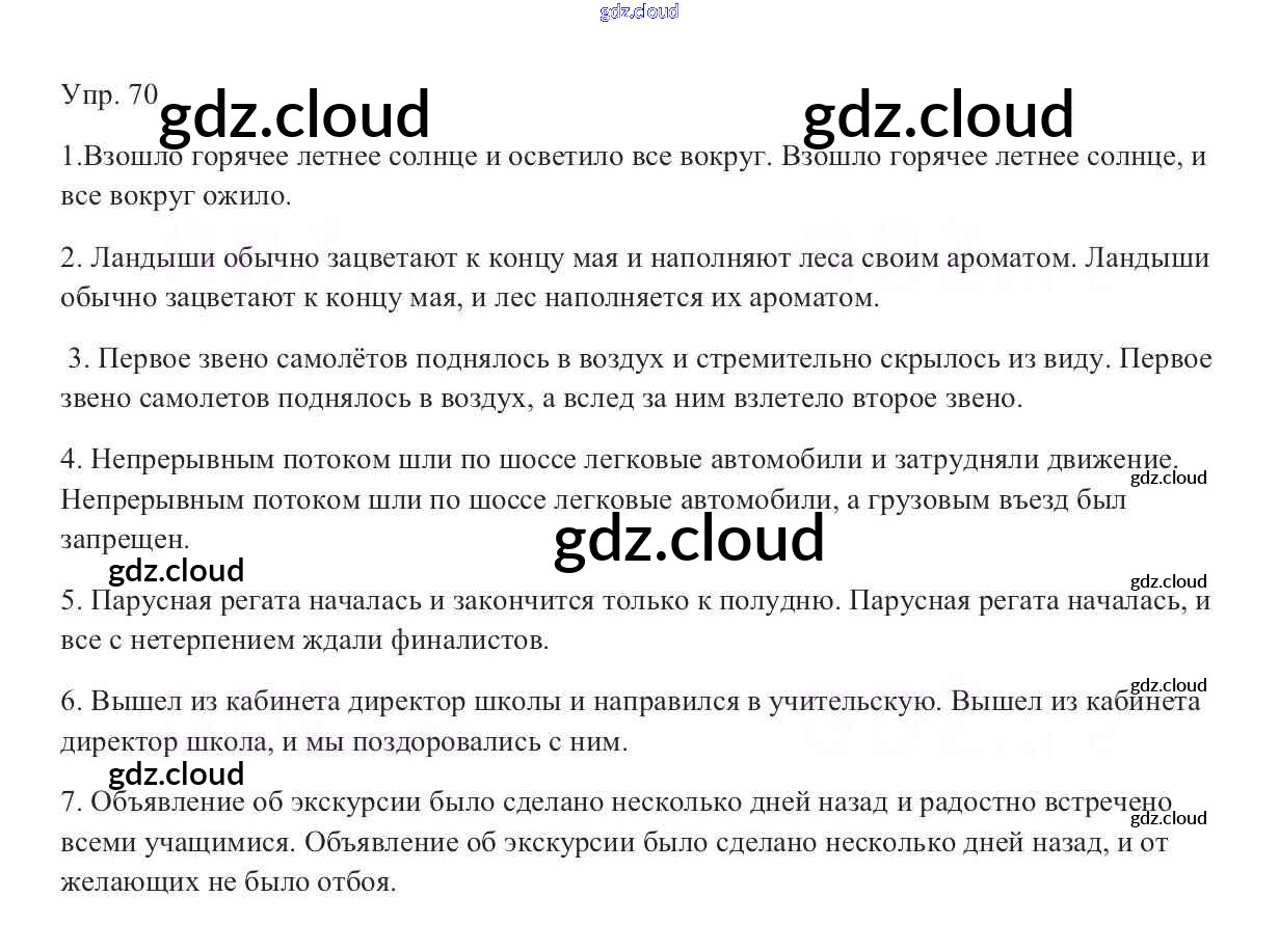 Ответ на задание 70 Учебник Русский язык за 9 (девятый) класс Тростенцова, Ладыженская, Дейкина, Александрова 2014