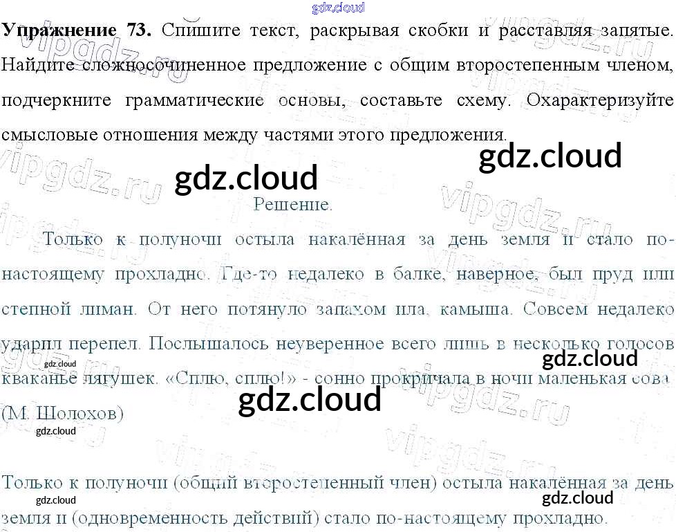 Ответ на задание 73 Учебник Русский язык за 9 (девятый) класс Тростенцова, Ладыженская, Дейкина, Александрова 2014