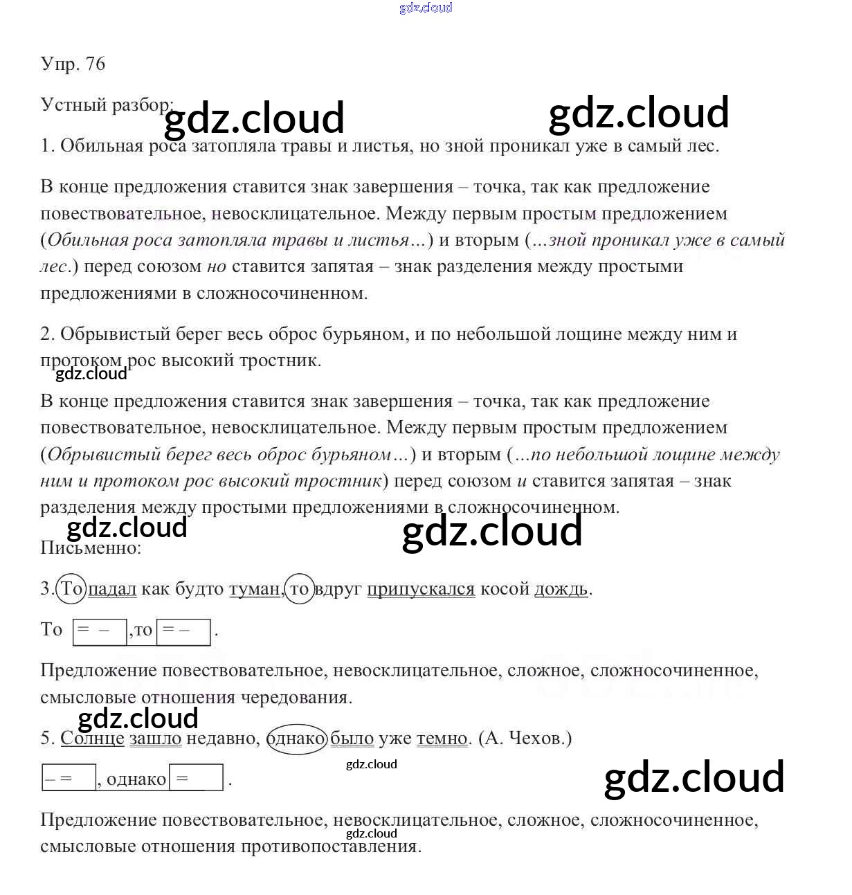 Ответ на задание 76 Учебник Русский язык за 9 (девятый) класс Тростенцова, Ладыженская, Дейкина, Александрова 2014