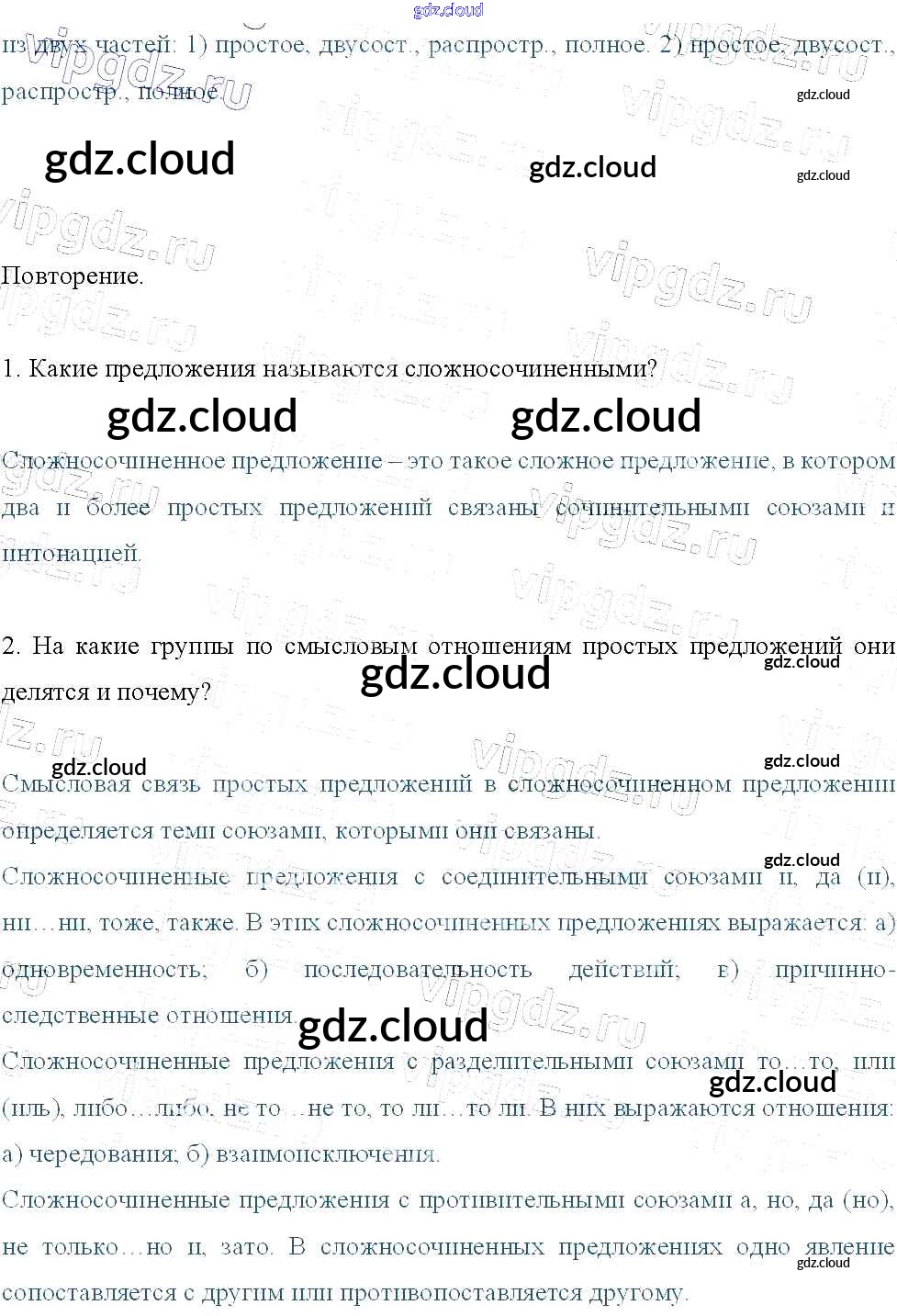 Ответы к упражнениям по Русскому языку 9 класс Учебник Тростенцова Просвещение
