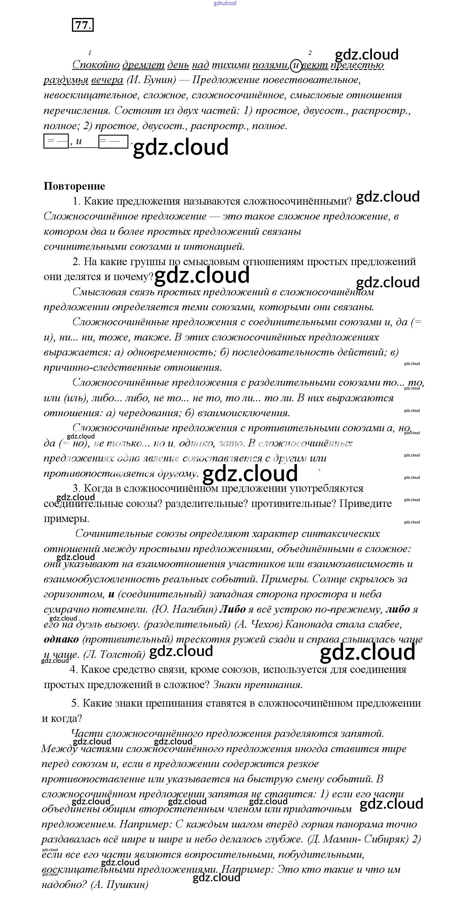 Ответ на задание 77 Учебник Русский язык за 9 (девятый) класс Тростенцова, Ладыженская, Дейкина, Александрова 2014