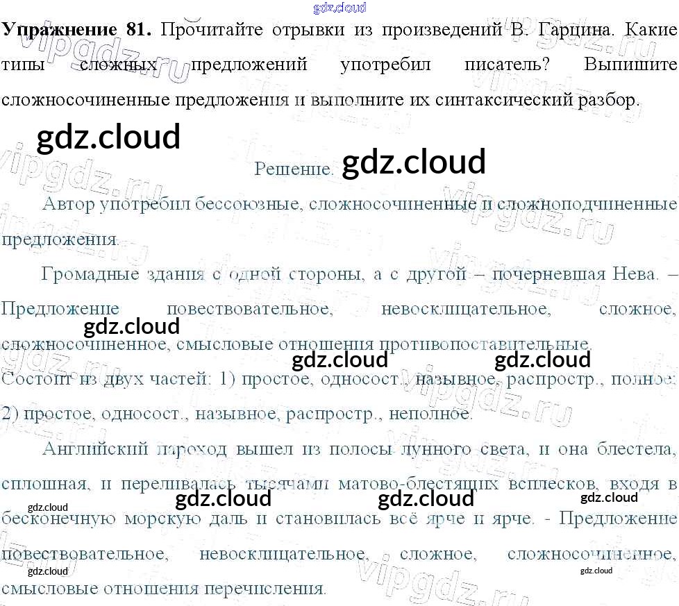 Ответ на задание 81 Учебник Русский язык за 9 (девятый) класс Тростенцова, Ладыженская, Дейкина, Александрова 2014