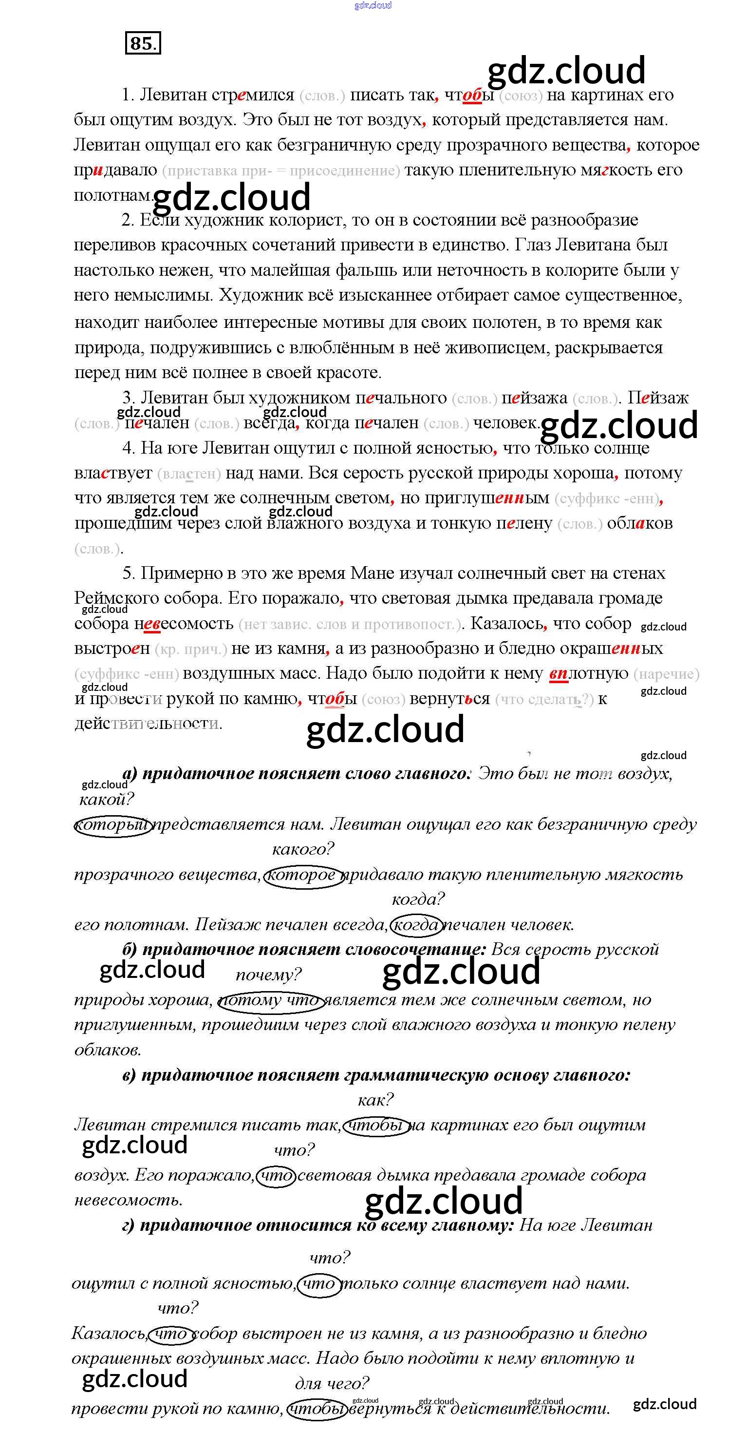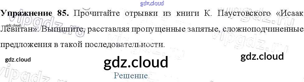 Ответ на задание 85 Учебник Русский язык за 9 (девятый) класс Тростенцова, Ладыженская, Дейкина, Александрова 2014