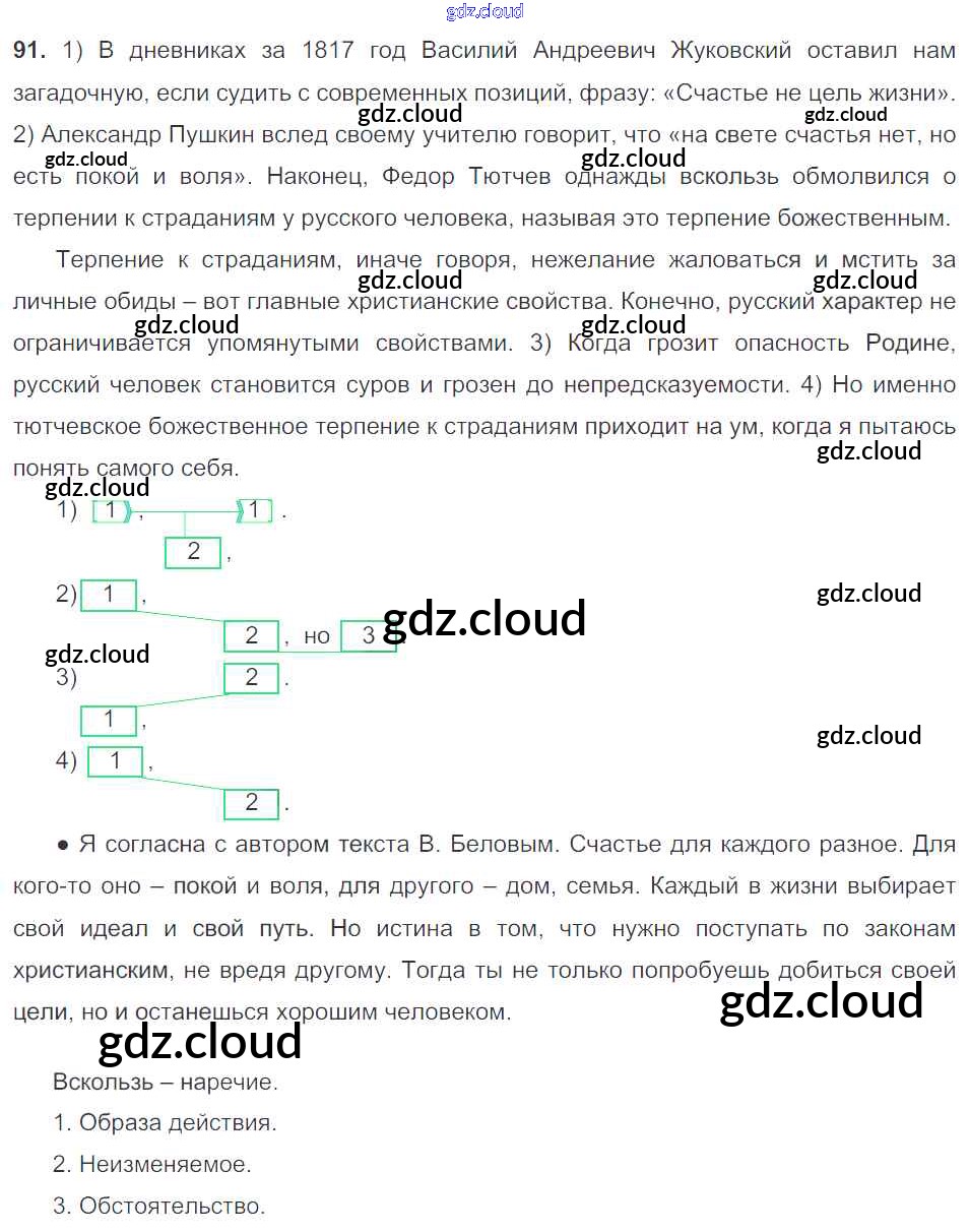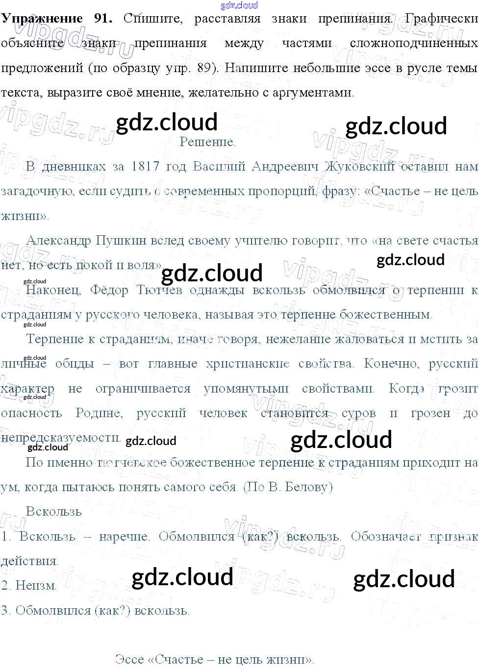 Ответ на задание 91 Учебник Русский язык за 9 (девятый) класс Тростенцова, Ладыженская, Дейкина, Александрова 2014