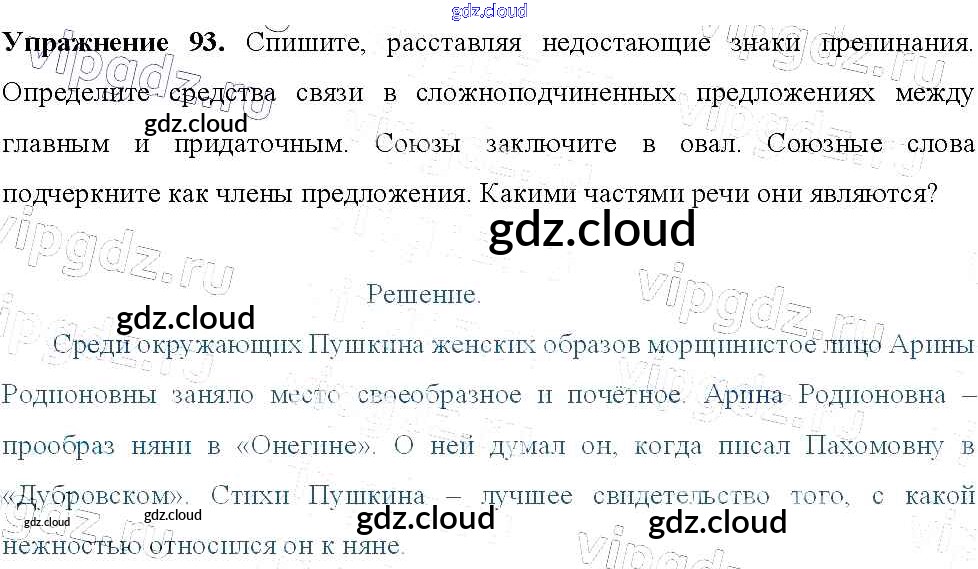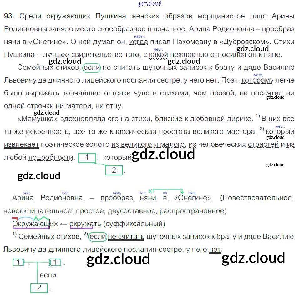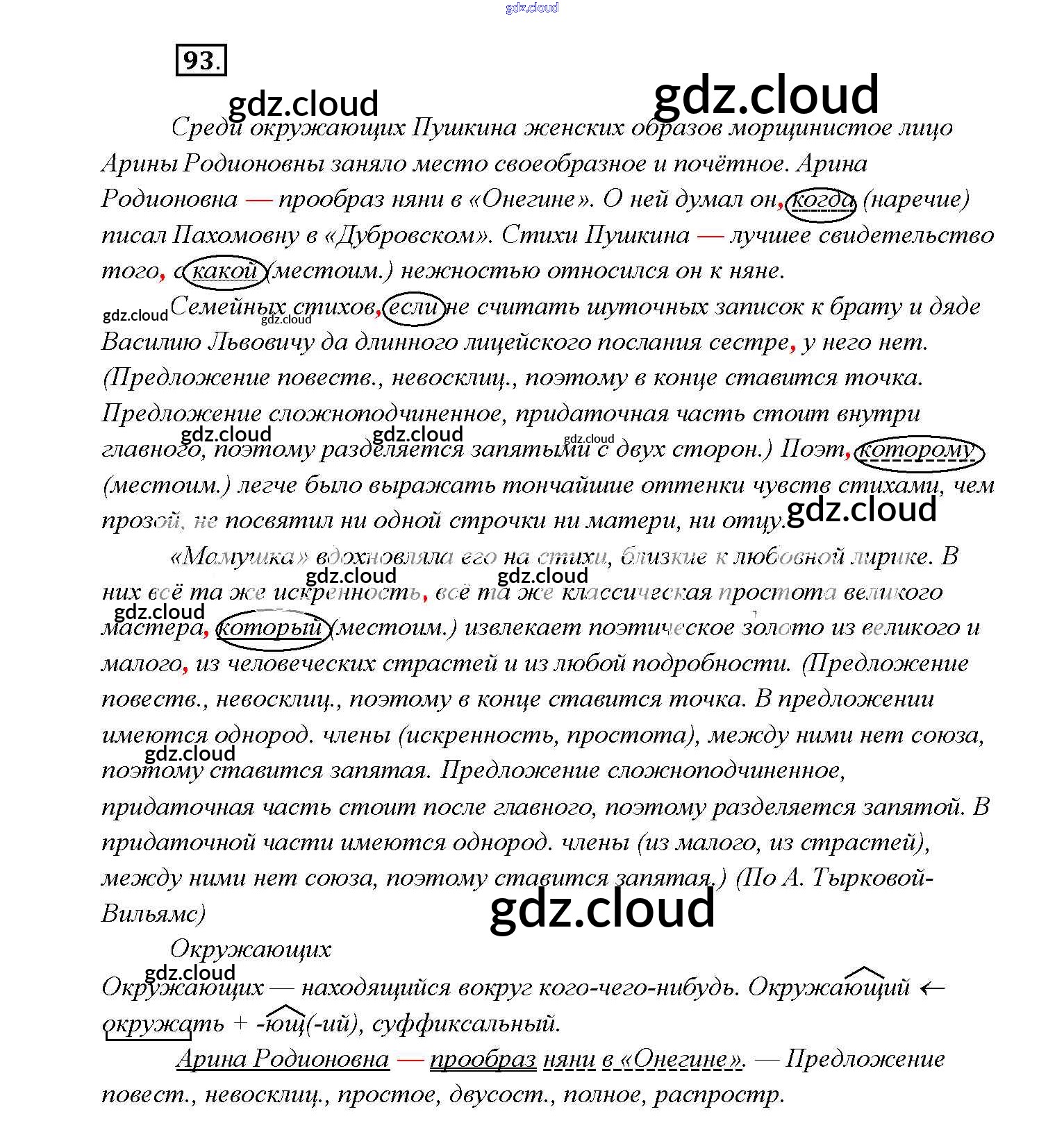 Ответ на задание 93 Учебник Русский язык за 9 (девятый) класс Тростенцова, Ладыженская, Дейкина, Александрова 2014